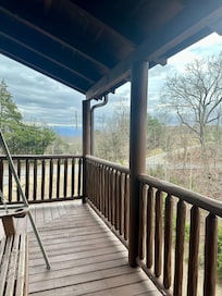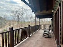 OUTDOOR LIVING: Gas grill, large wraparound deck, screened porch, patio furniture, rocking chairs, mountain views, porch swing chair