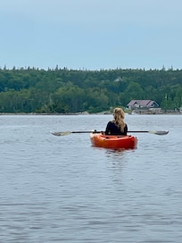 The Vík has 600 feet of direct water frontage for your enjoyment. The large upper patio boasts beautiful ocean views from every angle and is where you will find a BBQ and a large outdoor sectional for your use in the summertime. The lower Oceanside patio has a 6 person salt water hot tub and space for you to take in the ocean views. During the summer season you will find an outdoor seating in this space as well. Stepping down into the yard, you will find an oceanside fire pit area that would be perfect for evenings of story telling and marshmallow roasting in the summer. Next to the fire pit you will find a set of steps into the bay that would be an ideal spot to launch the kayak or search for sea critters and treasures. The cottage also has a dock on the other side of the property that is perfect for afternoons of catch and release fishing.