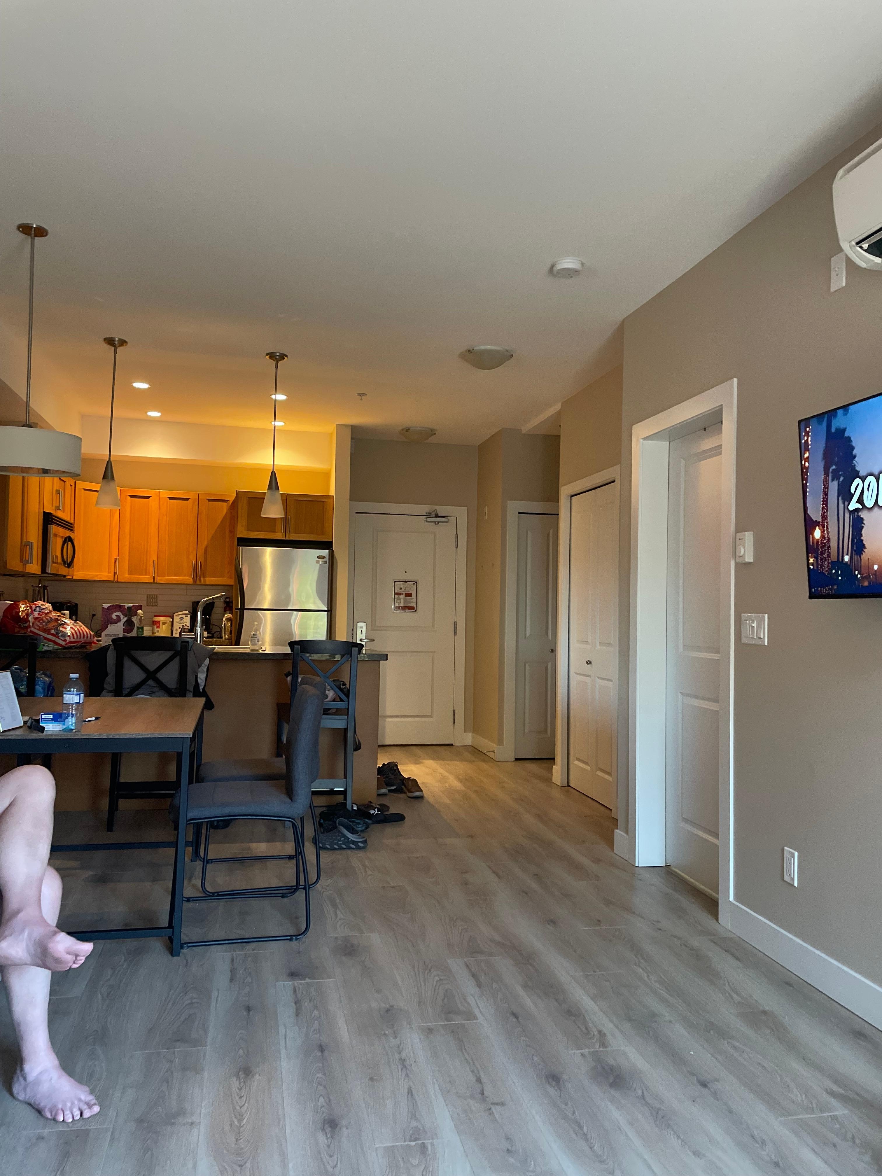 The space, kitchen and floors were great. I now know that 'West' Kelowna means driving over a long bridge to get downtown.. but just a bit of extra time. There were many stores just down the hill... "Josh" the property manager was amazing..responding quickly to questions. Next trip I would take my King size pillow and summer weight blanket for the bed...but air conditioning was great.. I got so use to the place. We were there one week. If it was mine I would tweak a few things..like another towel rack..but don't we all want it like home!.... The balcony is great in the afternoon. The main floor parking lot was hot (A/C related I think) and our truck/bikes were challenged by the small parking space......but overall this place fit myself and my husband well. Much cheaper than alternatives..and my manditory bathtub! Biking and walking were our 'go to' sports..and lots of that in and around Kelowna. Thanks Josh...