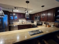 KITCHEN: Stainless steel appliances, dishwasher, dual drip/Keurig coffee maker, toaster, ice maker, knife set, dishware/flatware, cooking basics/spices