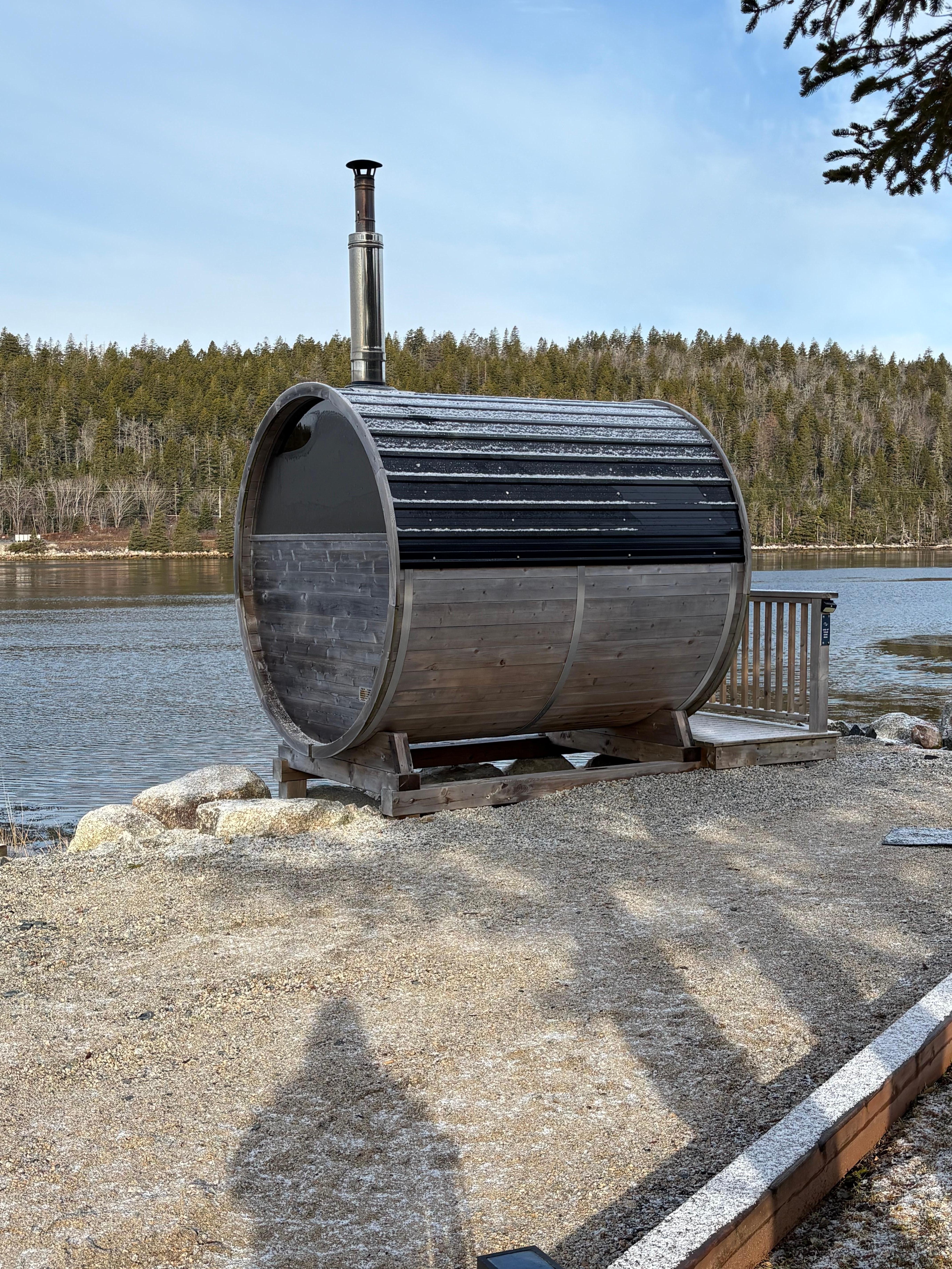 Includes preparation, initial heating to approximately 100°F, one tote of firewood, and access to the shared oceanfront sauna during your stay.