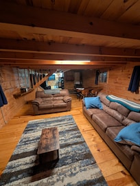 Overall was a good experience. We never did receive the access code and had to wait until roughly 4pm before we could get in. Since the service was pretty spotty, it would have been nice to have had the code the morning of or the day before arrival so we don’t have any issues with arrival. There was no hand soap. The bathroom was just water in the container and the kitchen had nothing. We used dawn soap the whole time. The upstairs beds were really cool, and we enjoyed them, but it would be nice if they had a way to not rock. The heat we couldn’t quite figure out. Thought it was set at 73 but woke up in the middle of the night to it being 88. Lots of head bumps upstairs (but we’re aware of this being a possibility due to other reviews)! :)The washer took forever to run a cycle, probably at least 2 hours.We used the tub but cold water kept dripping down the whole time from the shower head. Bath wasn’t filling past 5 inches and wasn’t hot at all. Overall, we really enjoyed our stay and wouldn’t knock a review down for the minor cosmetics. But we want to make sure others are aware of the things we ran into.The lights were a little hard to figure out, but we figured it out pretty quickly. You just need to check the sides of the lights because a lot of them are switches on the sides. One recommendation we have: invest in a journal book for people to share their experiences (pros and cons) so other guests can see in case they want to know! [if you had one we didn’t see it!]