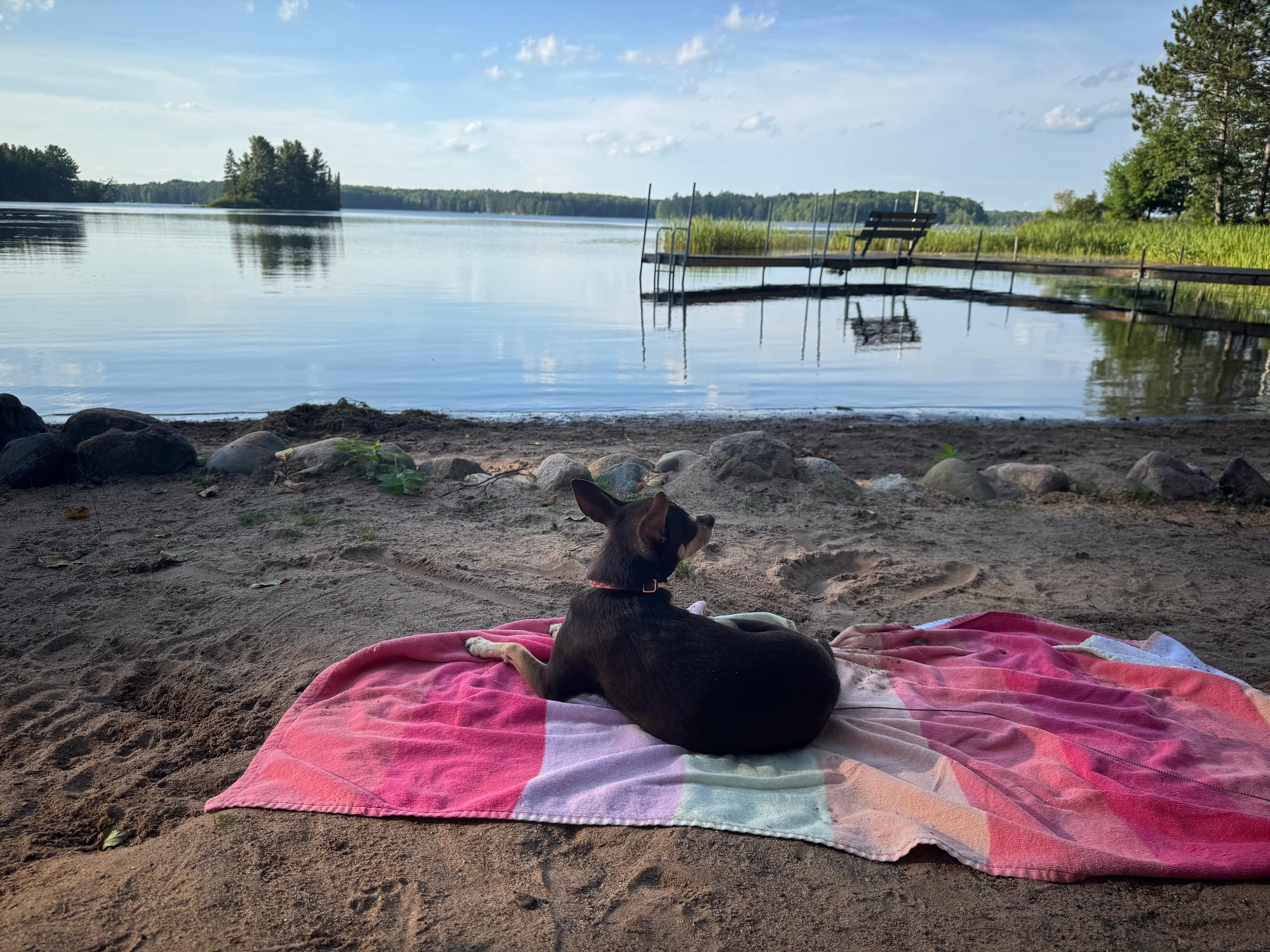 Step outside onto the large back deck overlooking Teal Lake, where a sandy shoreline and shallow water make it an excellent spot for swimming and kids’ play.