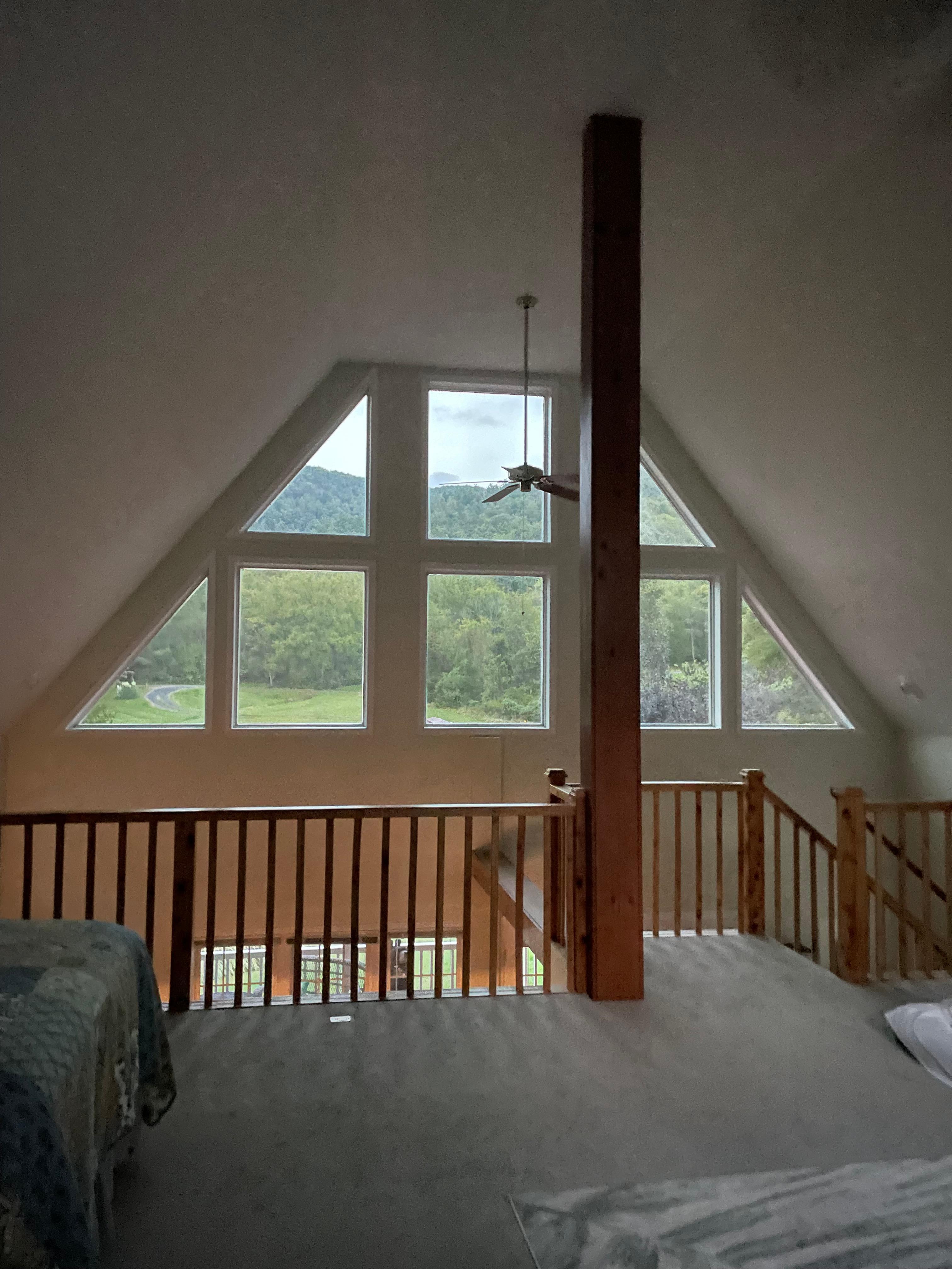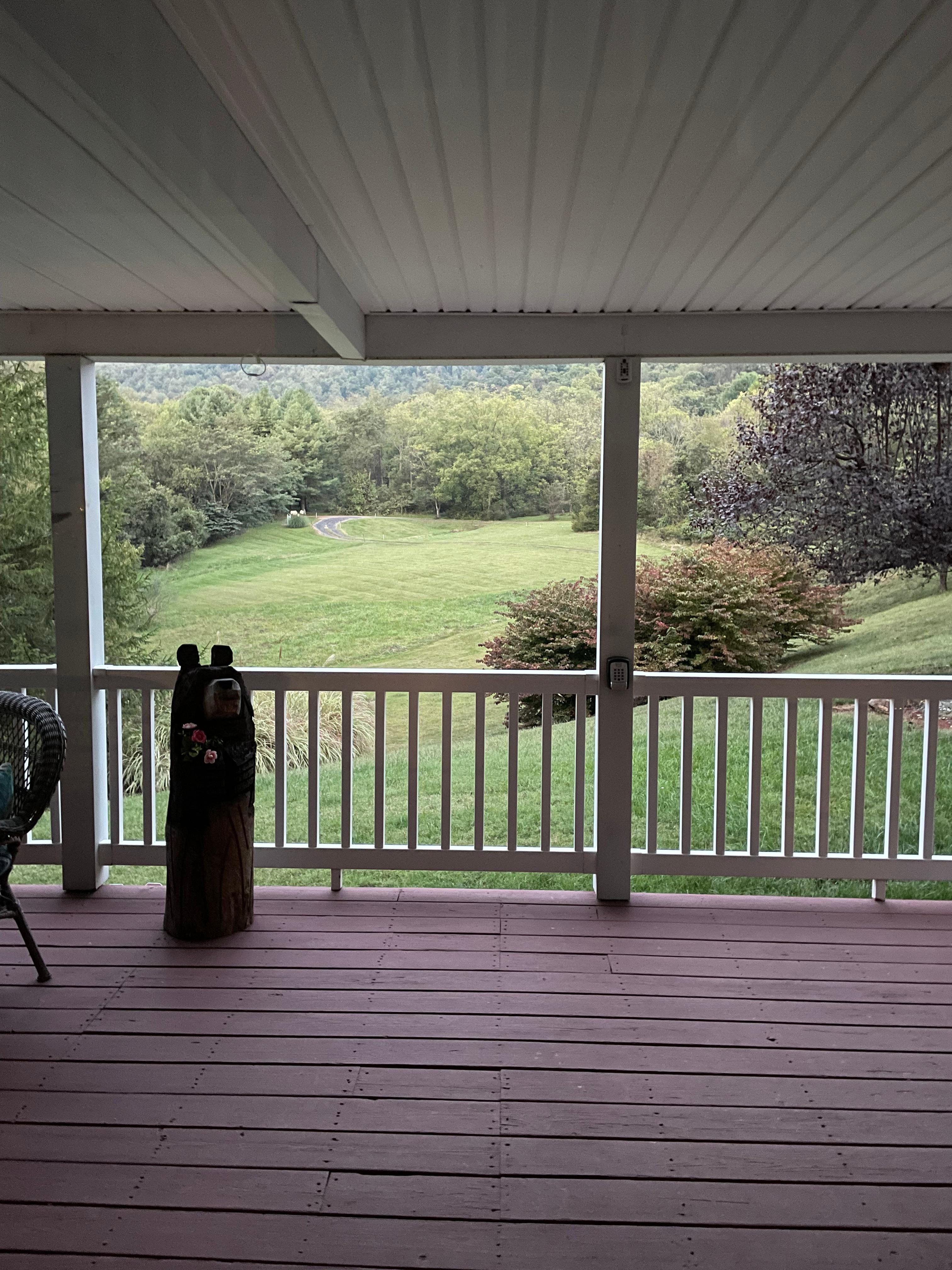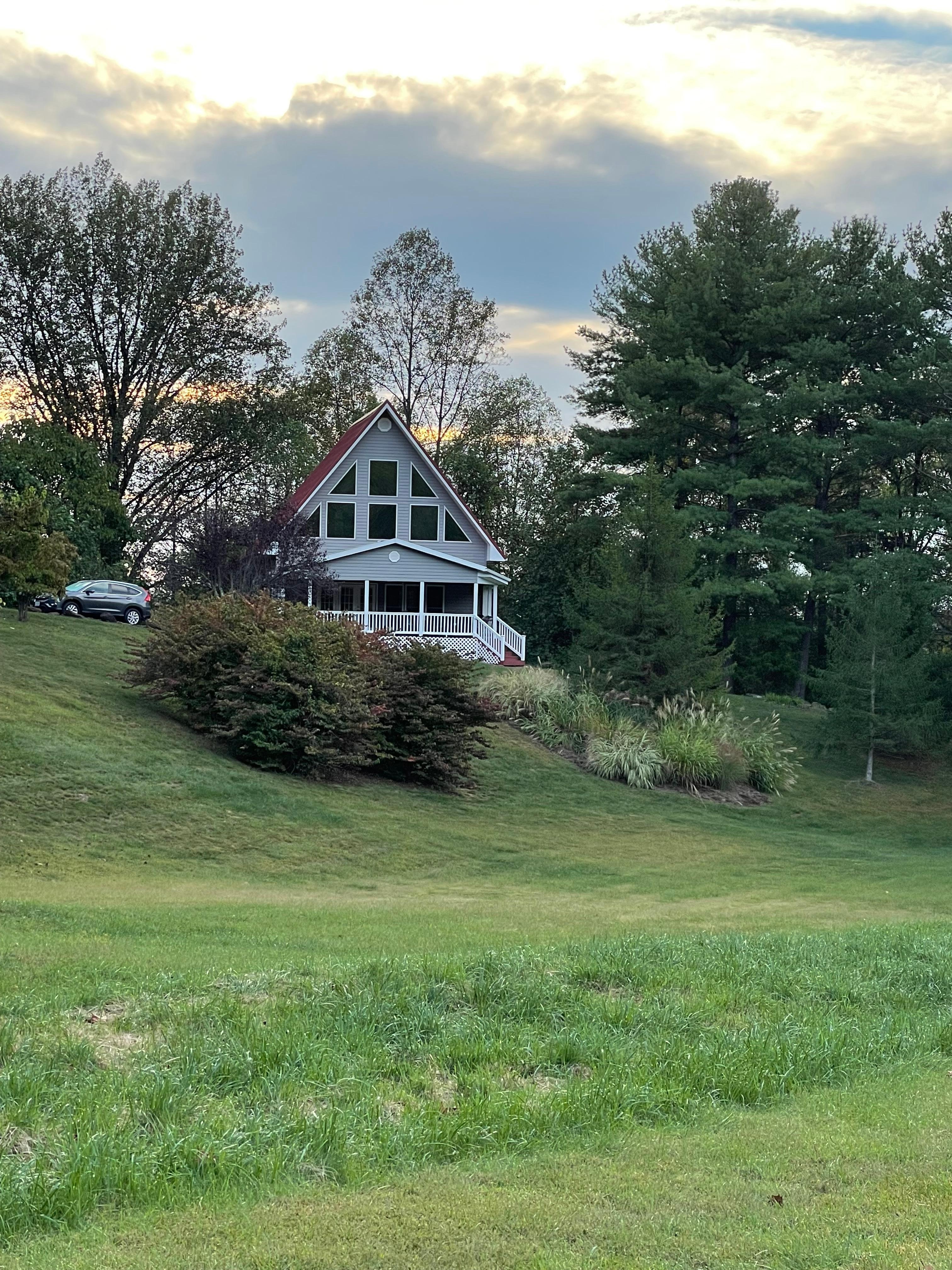 Windy Knoll invites you to come and relax and enjoy the stunning views of the Afton Mountain greenery. Large A-Frame windows allow the sunlight to come through so you can enjoy the birds and nature all around. The property sits on 3.5 acres so it is very private. An expansive rolling lawn in the front to enjoy watching the deer in the morning while having a cup of coffee on the wide front porch. Forest areas on the side and back of the house. Enter the home in the front door and a warm and welcoming living room await you with a couch, 2 comfortable chairs, and a gas burning fireplace. Throw blankets and pillows for snuggling while watching a movie. TV and DVD player with a selection of movies to choose from. The dining room with bay seated window has a large table to seat 6 comfortably. The front porch also has a dining table. Spacious, well appointed kitchen with all you need for preparing delicious meals after a day of hiking the Appalachian trail or sightseeing. Dish-ware, flatware, sauce and saute pans. Wine glasses, coffee mugs, serving ware. Crock pot, blender, mixer. Coffee pot with coffee bean grinder (Starbucks coffee beans in the pantry). You will find a few condiments in the refrigerator, spices, herbs, oil in the pantry. The loft bedroom has a Queen bed and a Double Bed with a private bathroom and shower. The first floor bedroom has two twin beds and a separate bathroom with walk in shower. Loft area also has a desk with laptop and printer for your use. Back deck has a grill all ready for those barbecues!