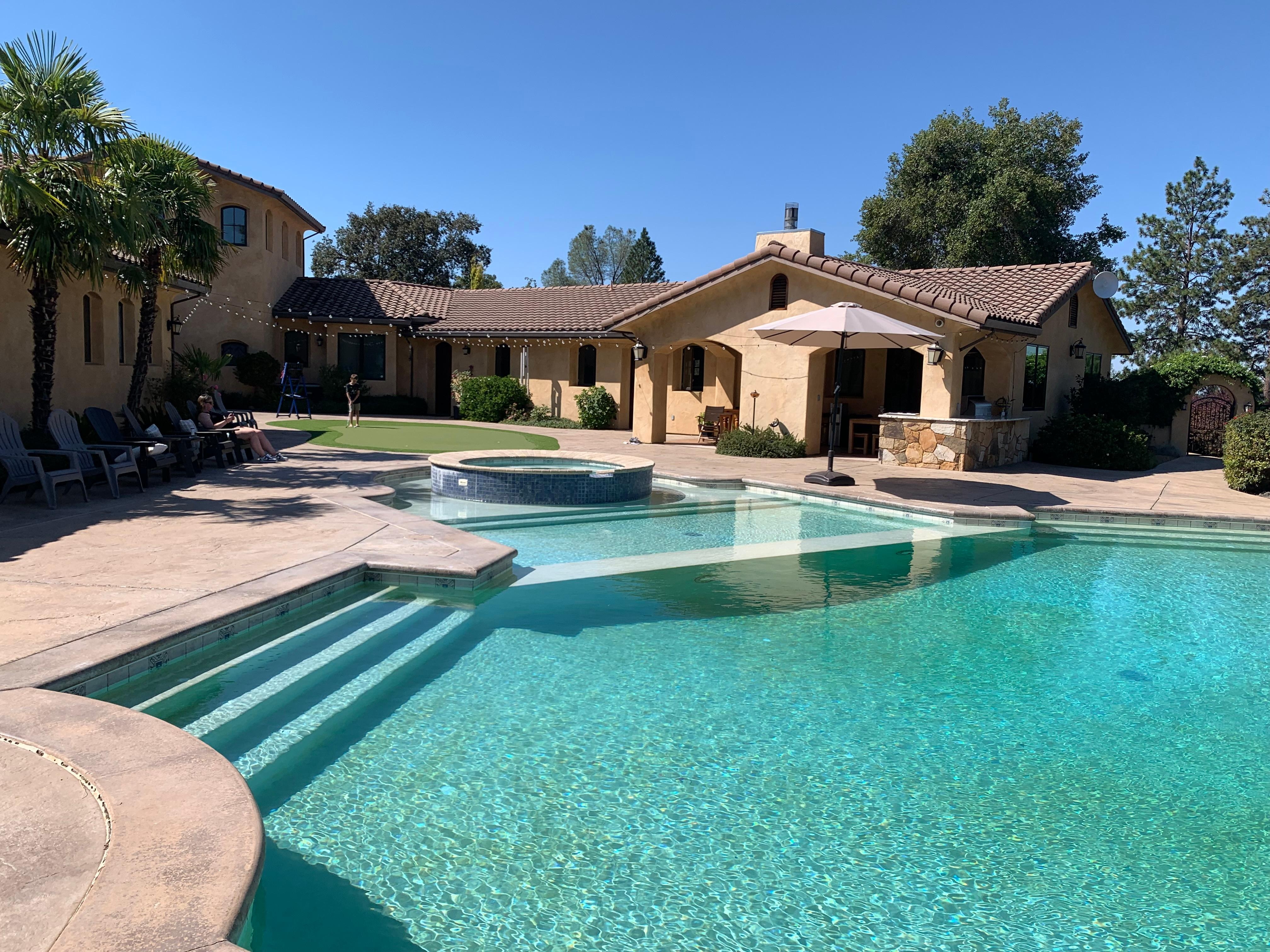 This estate has a 65,000 gallon salt water pool with a Jacuzzi, which boasts of an outdoor kitchen barbeque area. The available space inside for your enjoyment is 6,000 square ft. with professional Thermador kitchen appliances, including a built in steamer and is part of the great room. Here you will have access to a late 1800’s championship antique pool table. A must for those who love to play pool.