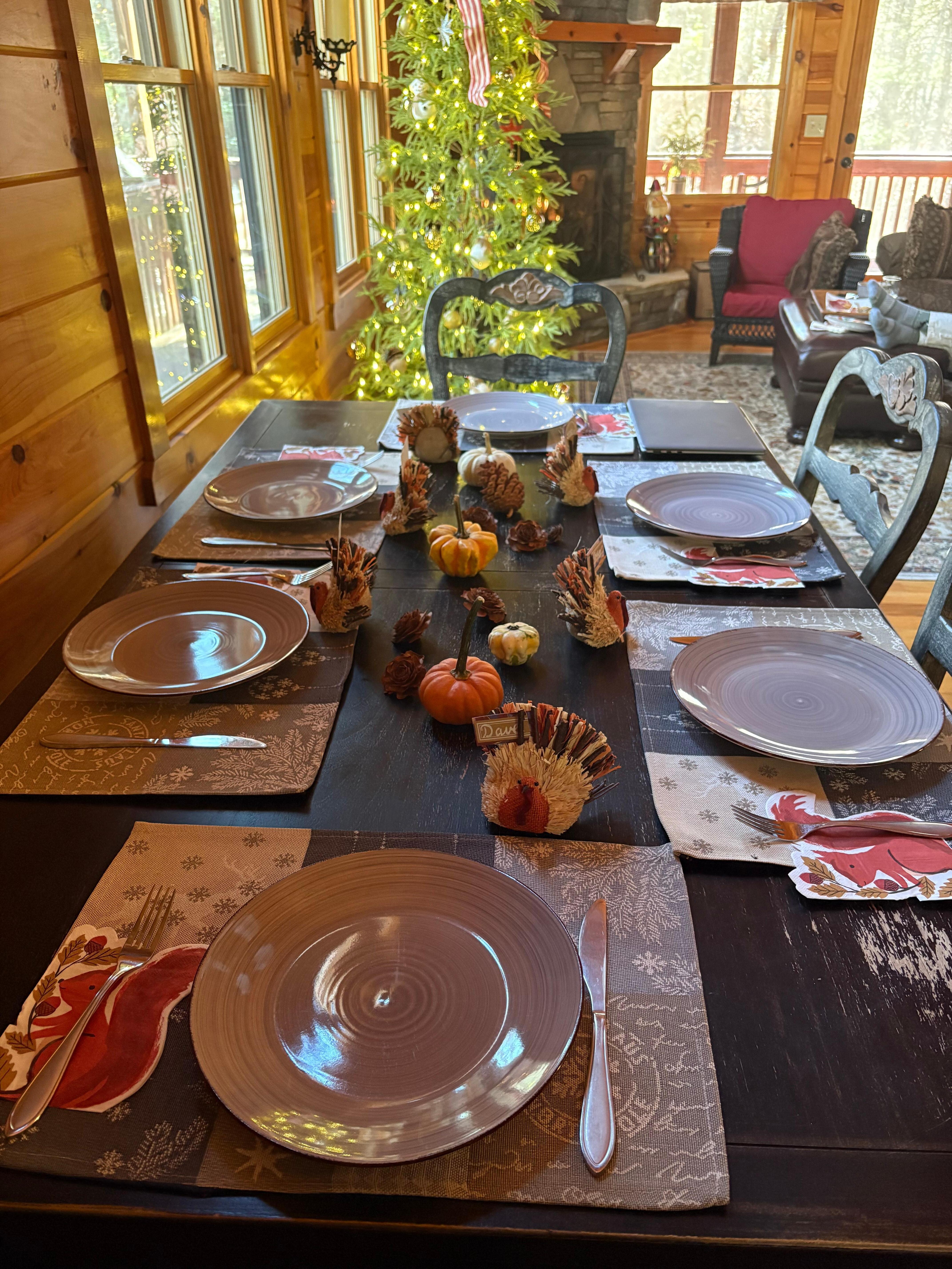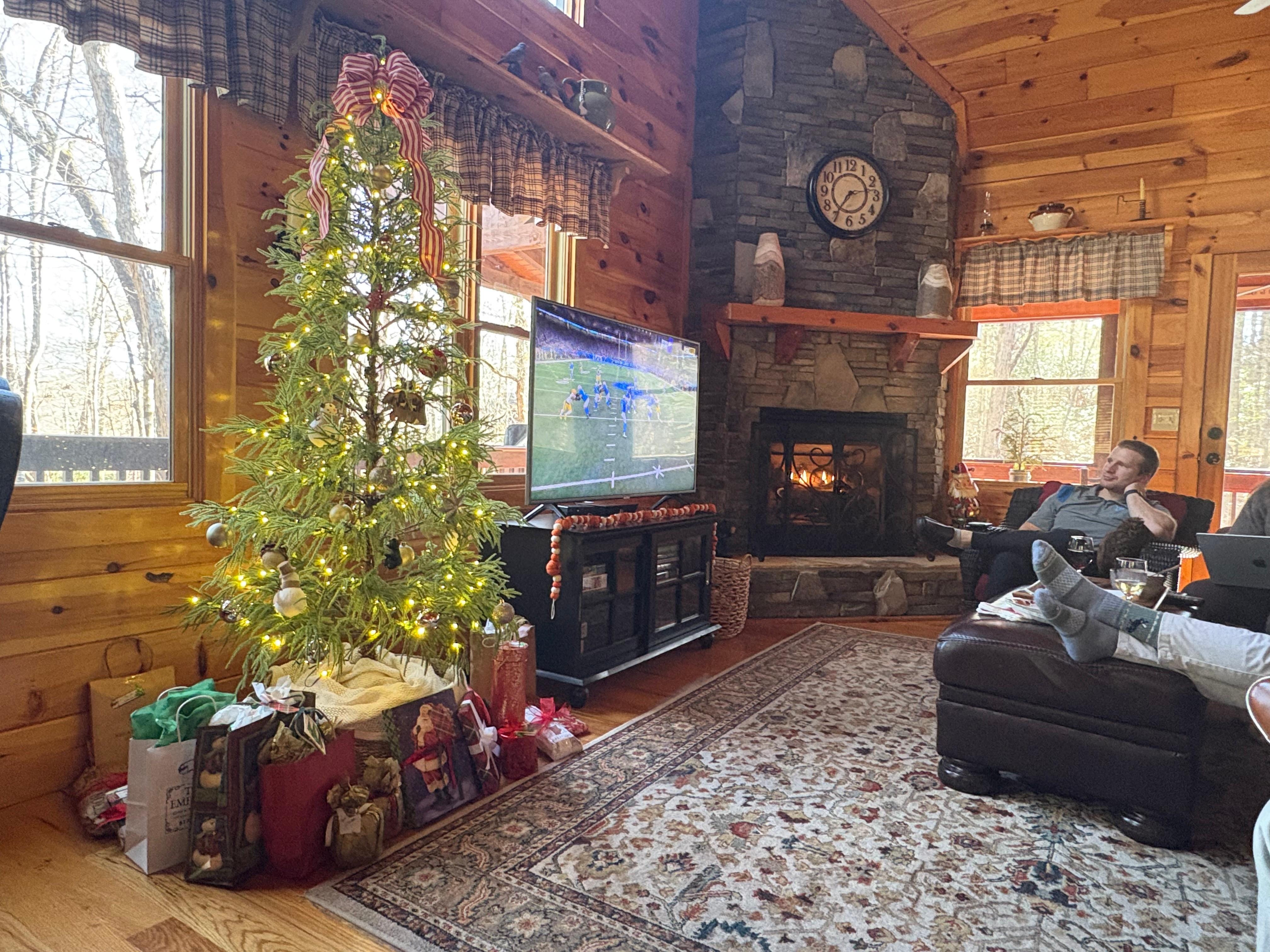 The cabin is so very cozy, it’s clear it is well-loved by the owners. We had a family Thanksgiving here, and were so delighted that the cabin was decorated for Christmas! The multiple fireplaces and decks are great. The kitchen is very well stocked - we even used the mandolin to slice our potatoes!