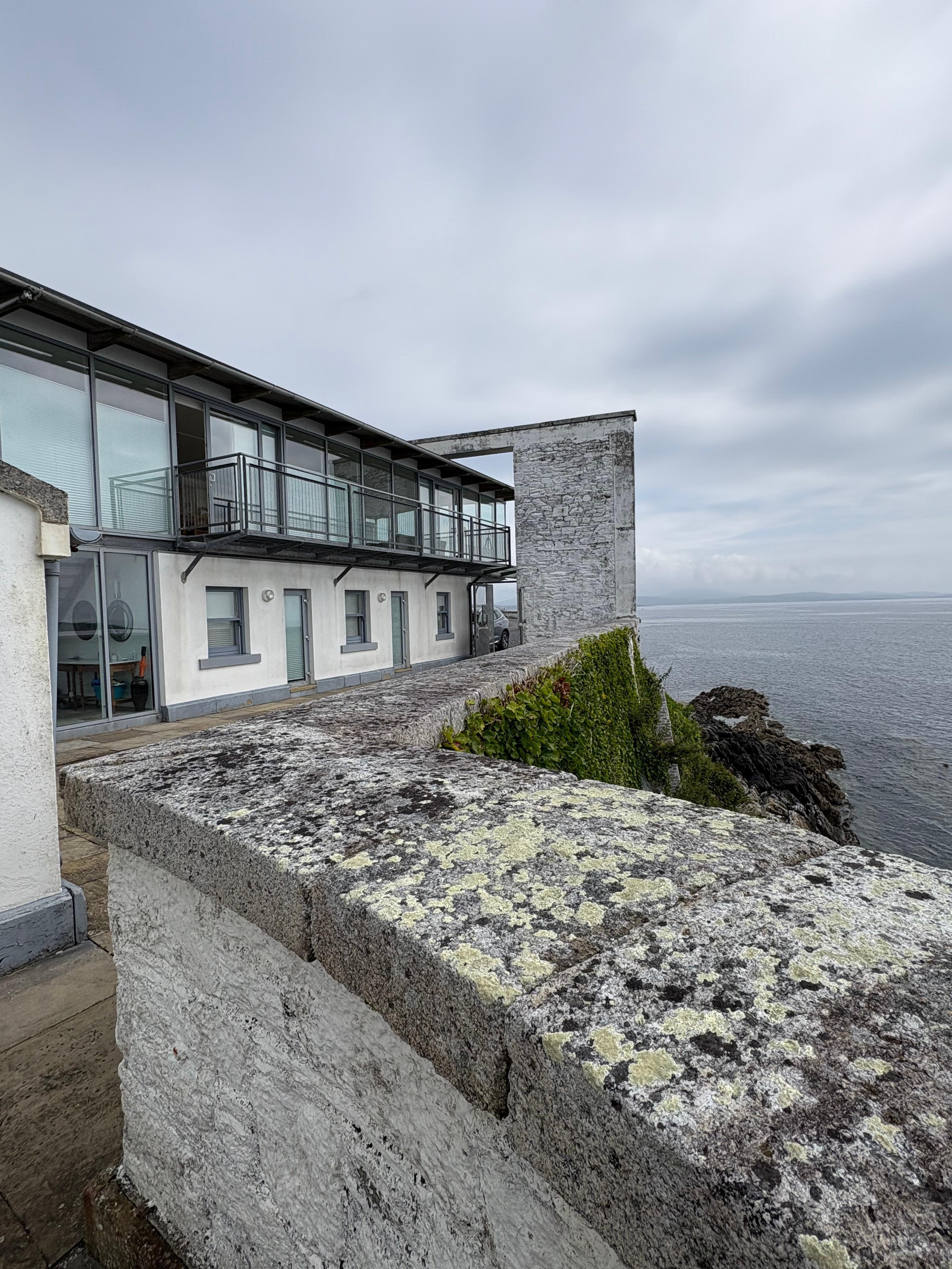 Across the small yard is the extraordinary light filled space that is the 'longhouse'. In 2008 the owners completed a radical design consisting of a rectangular glass walled cuboid resting on two new bedrooms and a second bathroom. This wonderful addition allows for spectacular views from the upper level through 270 degrees. In a feature article on visiting Ireland, US Airways Magazine (January 2012, page 38, available online) recommends the property as a fabulous place to stay and says that if you dream of ocean views, this property tops the list 'complete with floor-to-ceiling windows revealing the Atlantic's hypnotic blue waves'!