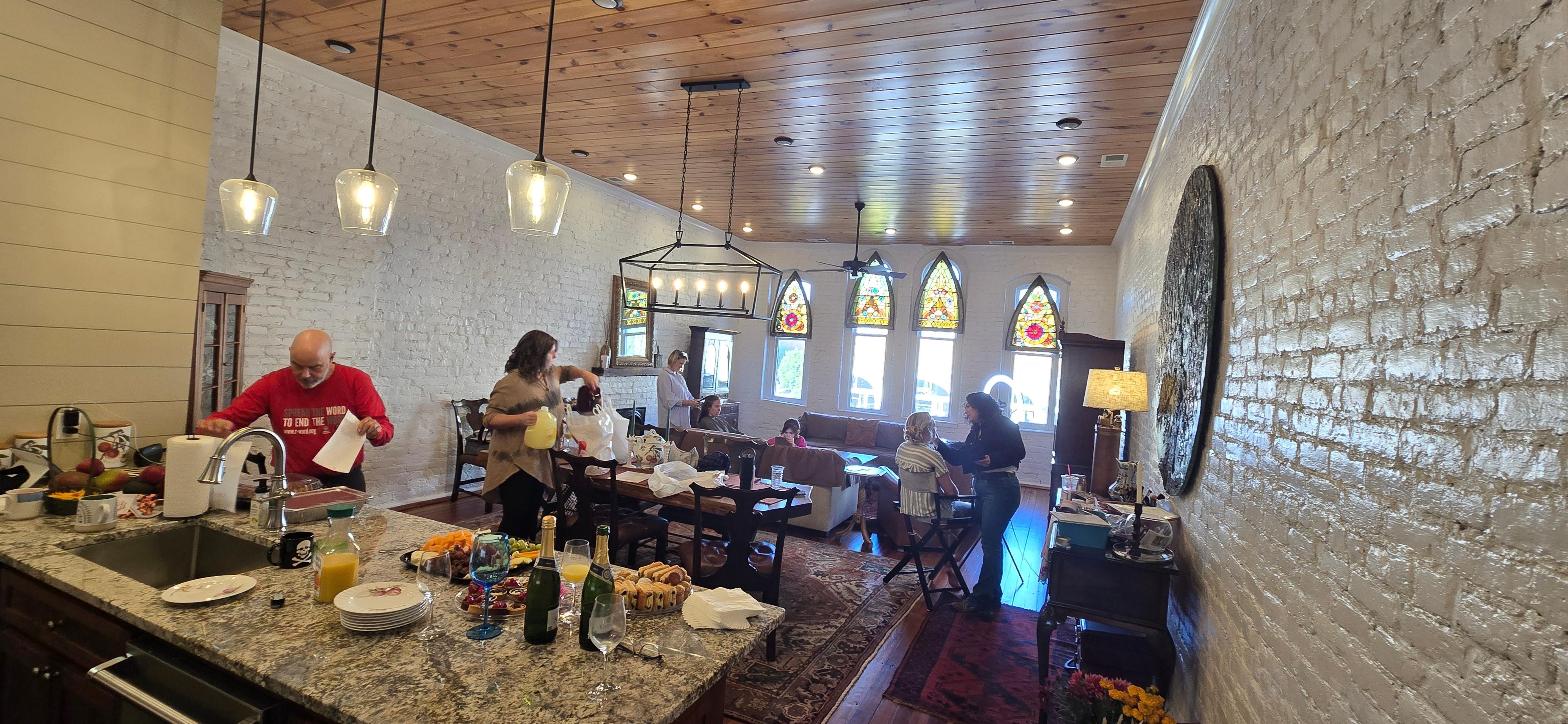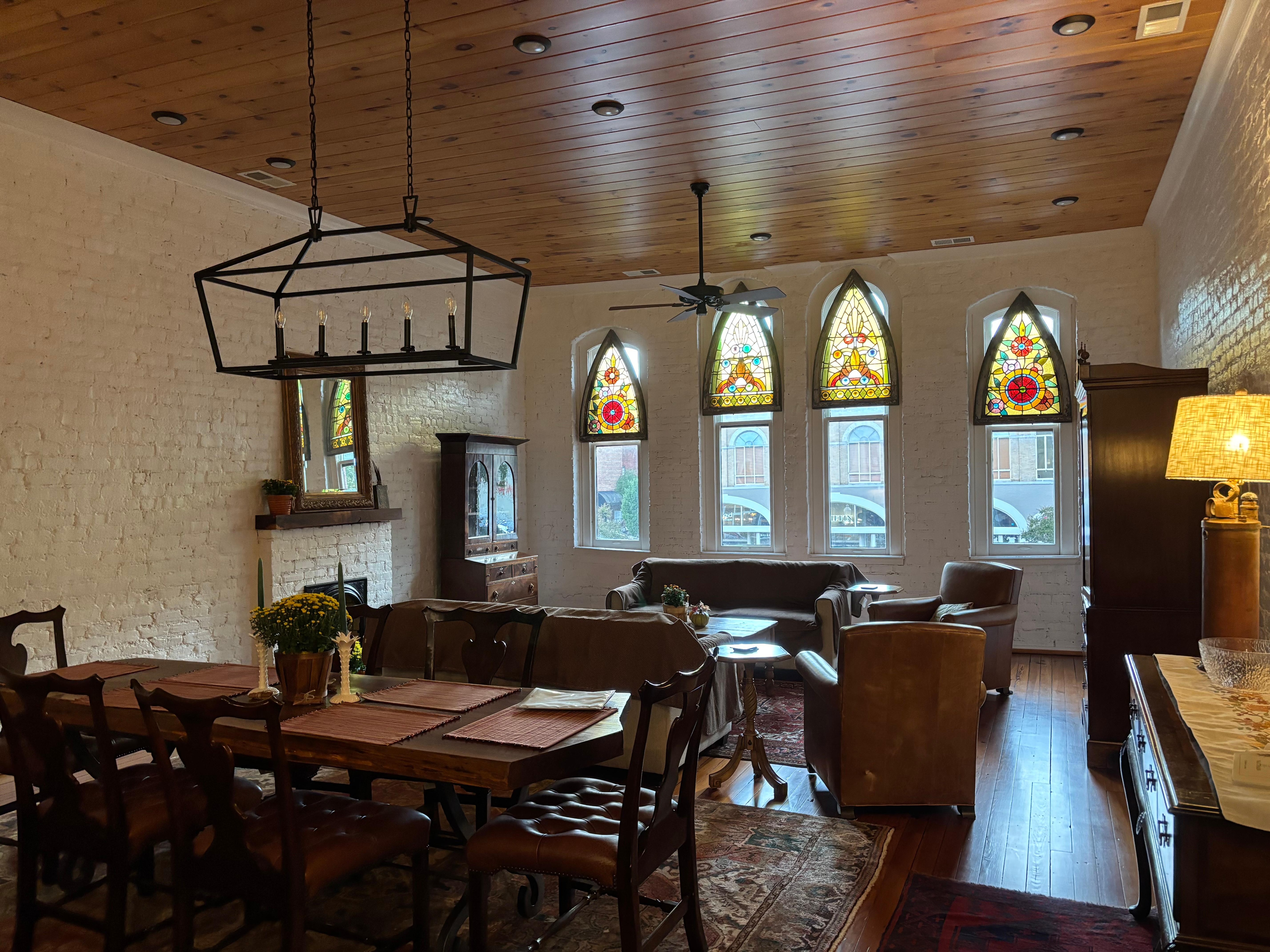 My wife Stacy renovated a space on Broad Street in lovely downtown Rome. The space has 3 bedrooms. The master bedroom is on the main floor of the loft with two bedrooms furnished with full sized bunk beds made from black walnut. The bunk beds have mattresses:)