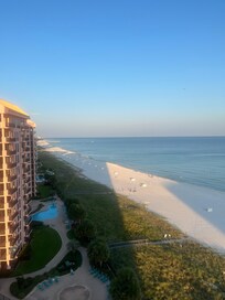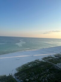 Amazing views of the beach! Went on for miles, and we really enjoyed being up so high. Host let us check in early which was so kind. Kids loved the hangout room with tv/and old school Wii. Kitchen was well stocked. Unit was nicely furnished, and right across from Walmart which was very convenient. Bring your pickleball paddles! There is a great court on top of the parking deck. Went in early September and weather was beautiful! The many pools at the complex aren’t heated, and we didn’t use as they were too cold. Had some issues getting the projector up and going, took us a day or so to figure it out which was disappointing. Wasn’t blue mood lighting in living room, and we were disappointed in that as well since it looked cooler in pics than in person.  Only way to contact host was through Vrbo, and no local staff. This was new for us as we always have gone through a local rental agency.  Not necessarily an huge issue, but was different when it came to communication. We did read after that other reviewers mentioned that as a con. Unit had a pretty musty smell when we walked in, opened up the doors to air it out, never completely went away. No barstools at the bar either, which was strange as the kitchen was open and had a huge bar you couldn’t sit at which would have been nice while cooking or snacking. We stay at least once/twice a year in a beach rental, and did feel like it was a bit overpriced for the number of cons. But again, the view was INSANELY beautiful !!