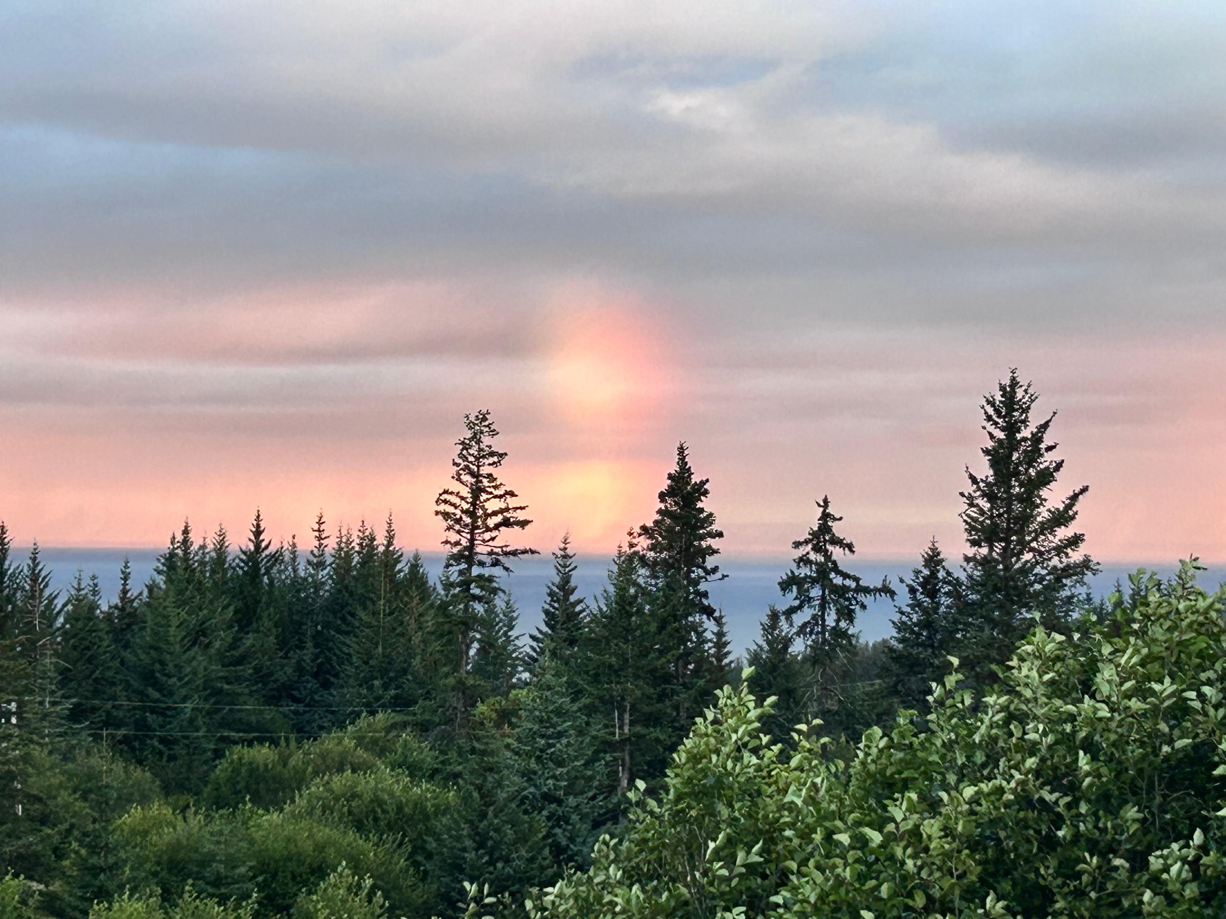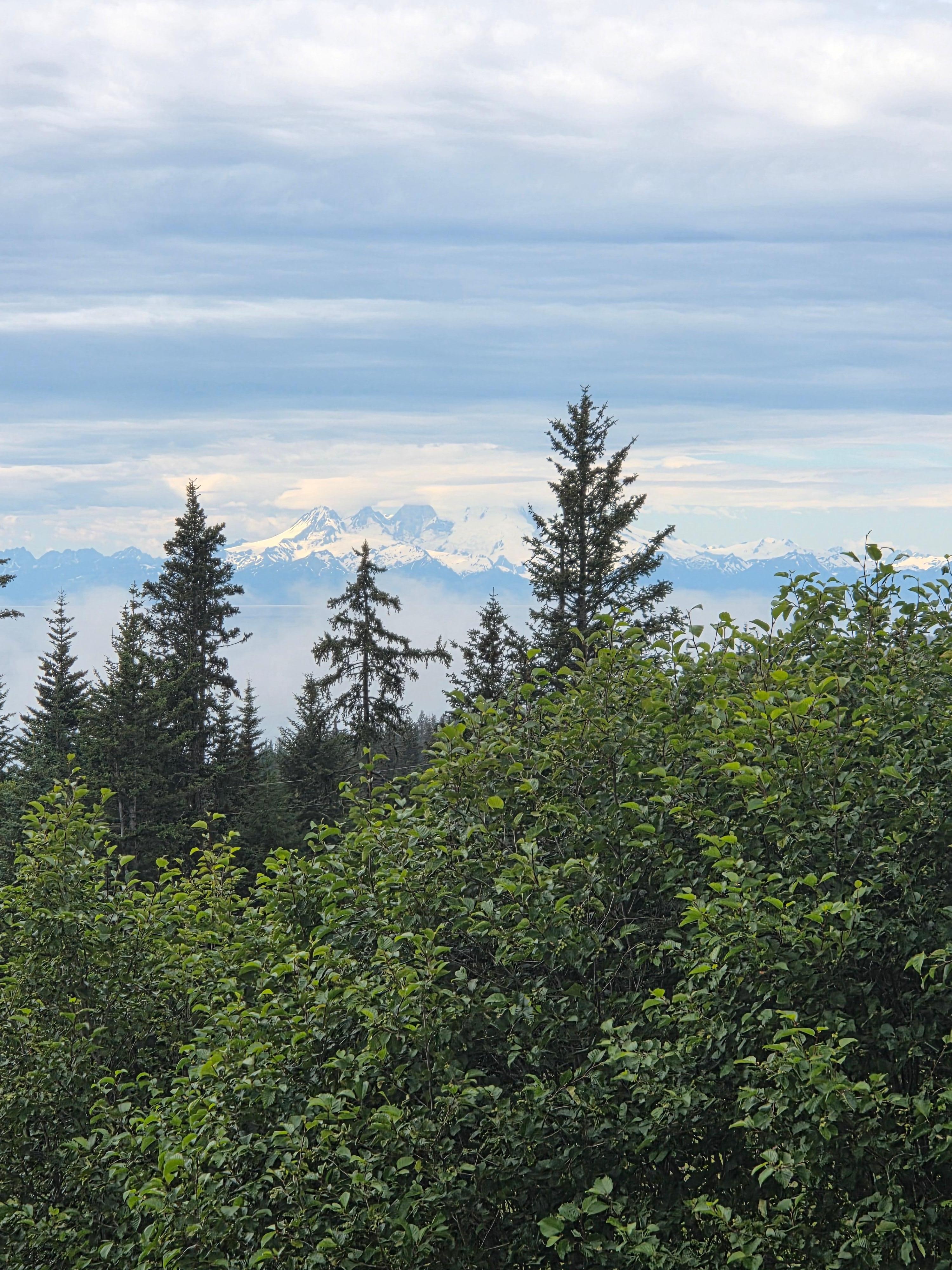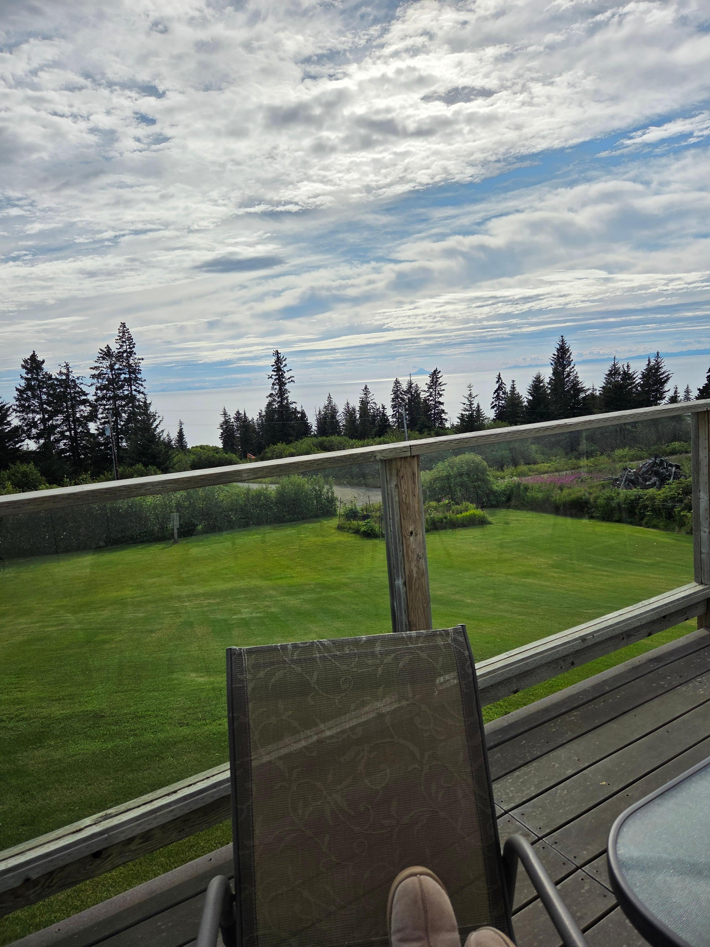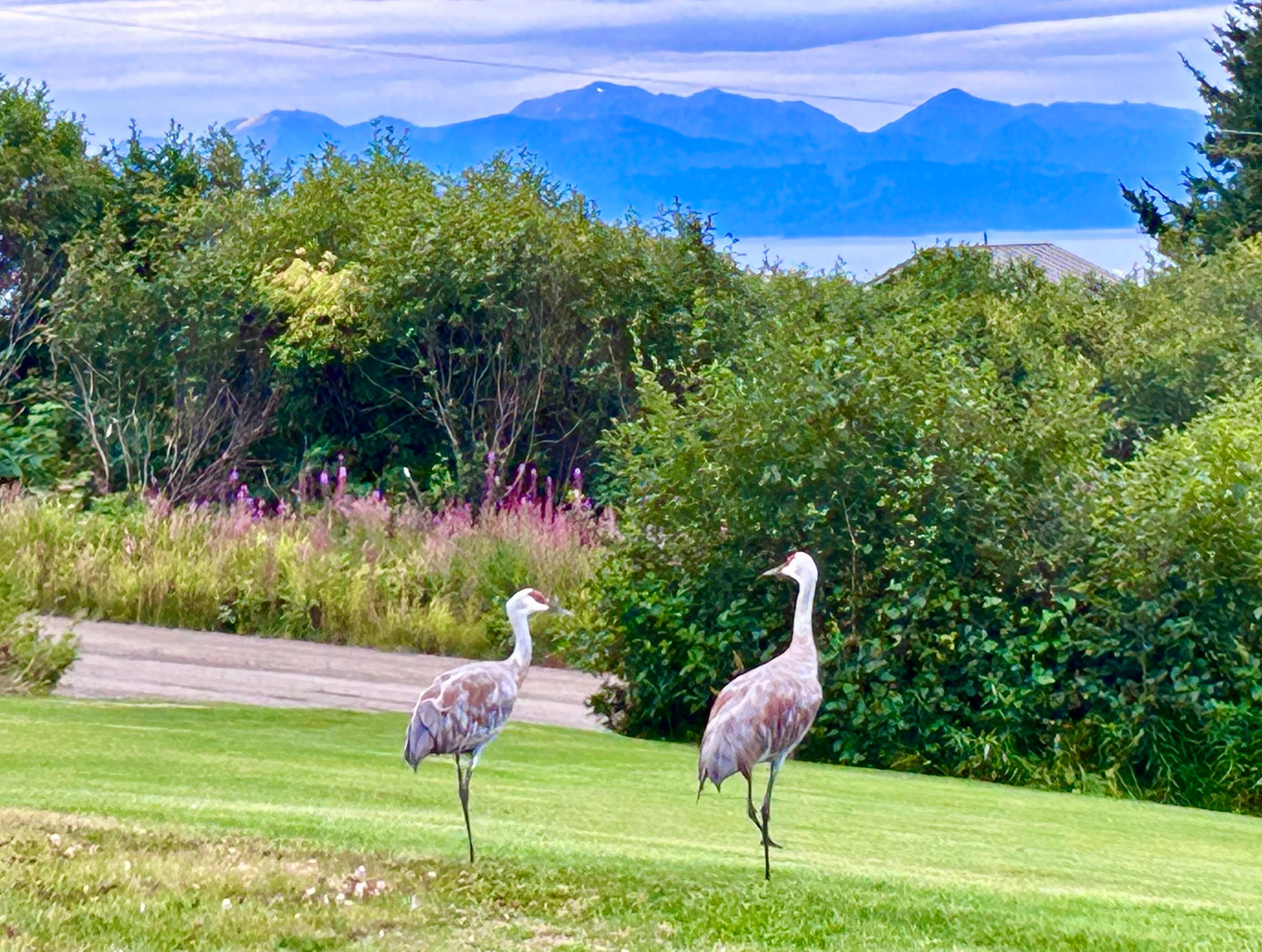 The cabin is located near the bluff, just before Baycrest Hill as you travel the five minute drive into Homer. The cabin sits on top of a downward sloping lot which provides a stunning view of Kachemak Bay and Cook Inlet. Additionally, beyond these bodies of water you can view mountain ranges including four volcanoes: Mt. Douglas, Mt. Saint Augustine, Mt. Iliamna, and Mt. Redoubt. The views from this property are simply amazing and beyond words. The wildlife is also exceptional with moose and Sandhill Cranes visiting the yard while eagles fly by or sit in the trees.