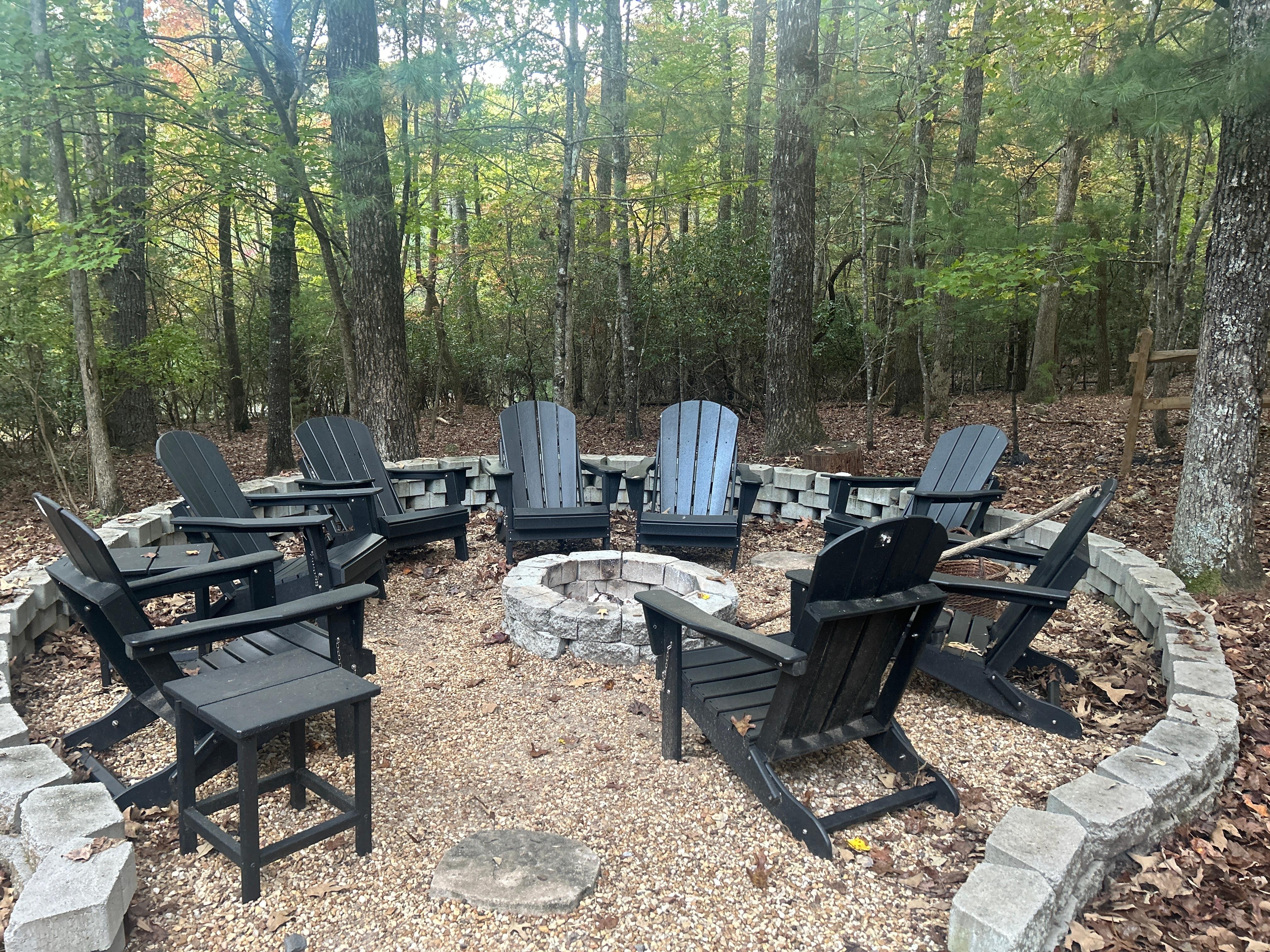 -Fire pit with 8 chairs (Firewood is not provided but feel free to use what is left behind). Wood can be purchased at Van Zandt's Store just down the road please don’t gather wood from off the property