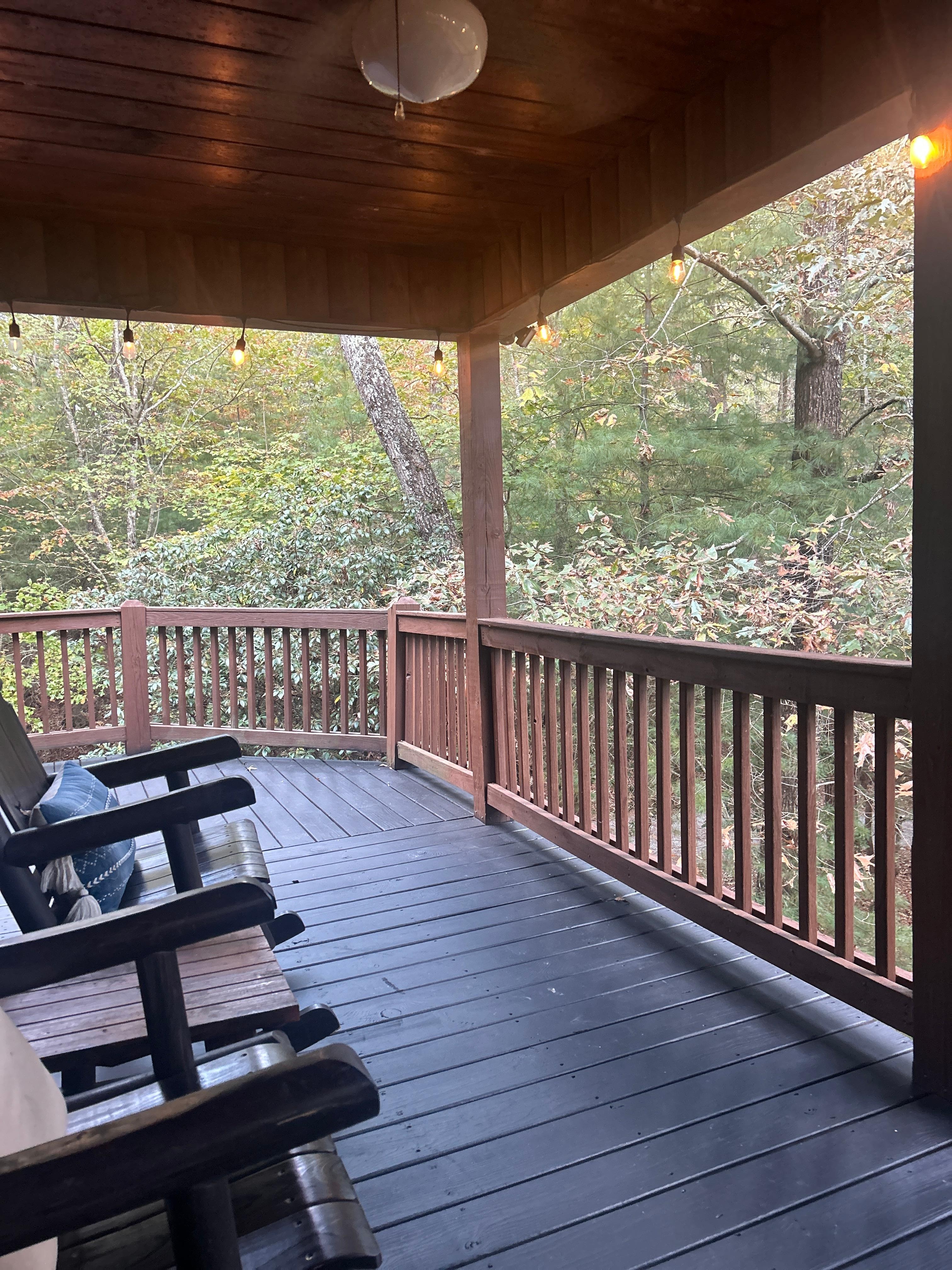 Even if you are just looking for a quiet getaway this cabin is tucked off the road on a secluded 1.5 acre lot surrounded by trees. Whether hanging out on the front porch, playing games in the game room (board games, air hockey, arcade games, poker table) watching a movie on one of the 5 TVs in the house, sitting by the fire at the fire pit, or in the hot tub there is something to do for everyone.