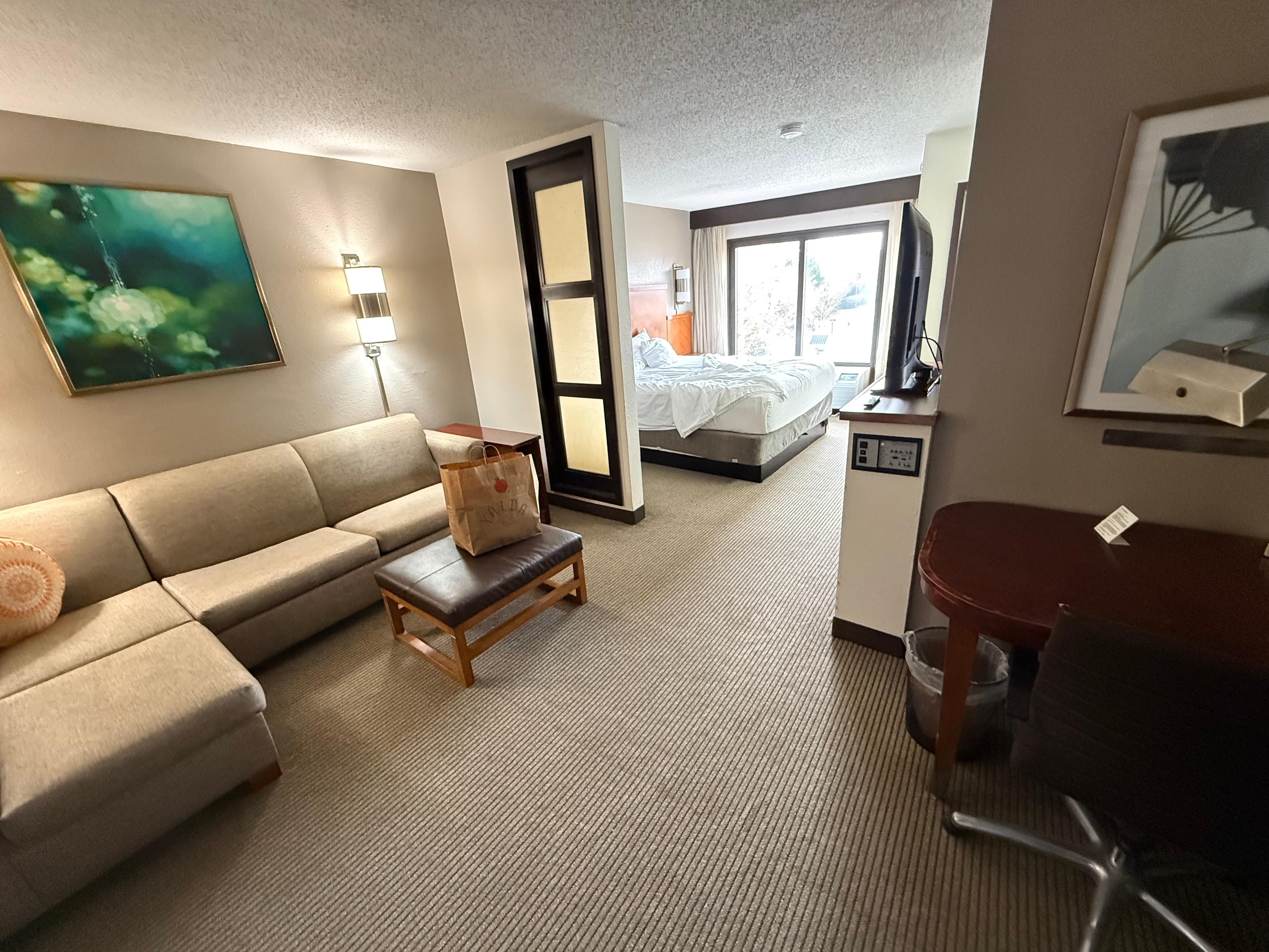 Our pet-friendly hotel's spacious rooms have double, queen, or king beds. All rooms also feature a host of contemporary amenities, including a flat-screen TV, coffee maker, separate seating area, and free Wi-Fi. The hotel's casual restaurant offers breakfast, coffee, light bites, and shared appetizers and snacks. The on-site bar is ideal for ending the day with a house-crafted cocktail, wine, or beer. Guests can also work out at the fitness center before unwinding in the seasonal outdoor pool. The hotel offers a 24-hour business center for corporate travelers, with meeting rooms and conferencing space available. Complimentary parking and shuttle services around the community are also provided.