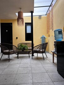 There’s drinking water in the lobby with a seating area and a mini fridge (our food was taken with no notice though, so maybe label it?)