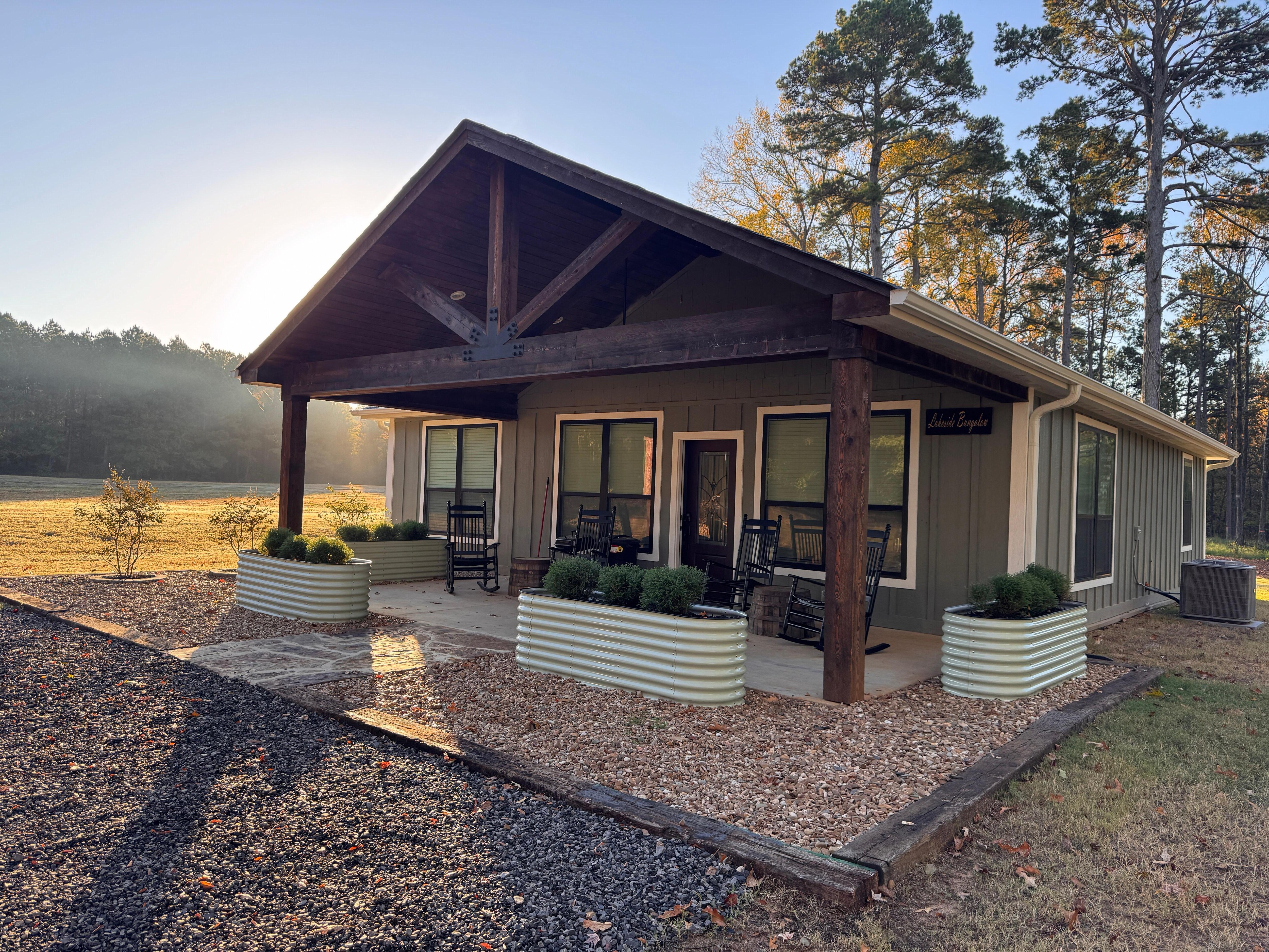Escape to the Enchanting Lakeside Bungalow, a BRAND NEW 2-bedroom/1-bath retreat on the stunning shores of Delaware Bay at Lake Dardanelle! Spend your days fishing, canoeing, or kayaking right from the property. Sip your morning coffee on the charming covered rocking chair porch, then embark on nearby adventures—bike the scenic trails of Mt. Nebo, hike breathtaking waterfalls at Mt. Petit Jean or stroll through the charming shops and restaurants of Russellville. Your lakeside vacation awaits!