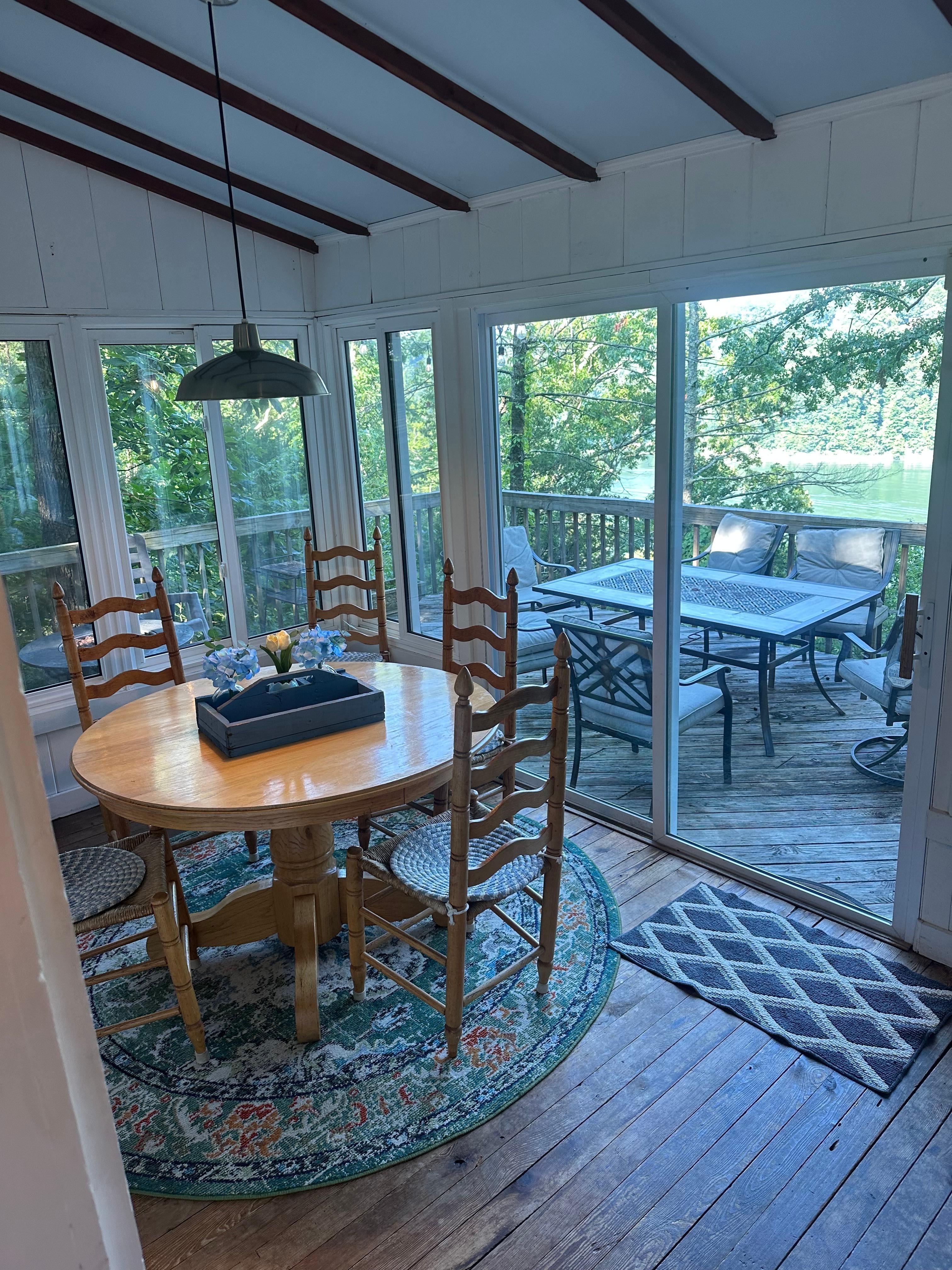 This cabin is a home run if you are looking for the same things as we were. Imagine waking up in the morning to the birds chirping in the woods surrounding the cabin, fixing a cup of coffee, and relaxing on the deck that provides one of the best views you will ever experience on Lake Cumberland. Imagine opening up the windows in the sunroom and feeling the breeze coming off the lake while you relax on the couch and read a great book or take an afternoon nap. Imagine heading to a nearby restaurant in Somerset as a family and ending the day with family game night. These are memories that you will never forget and they could be your reality!