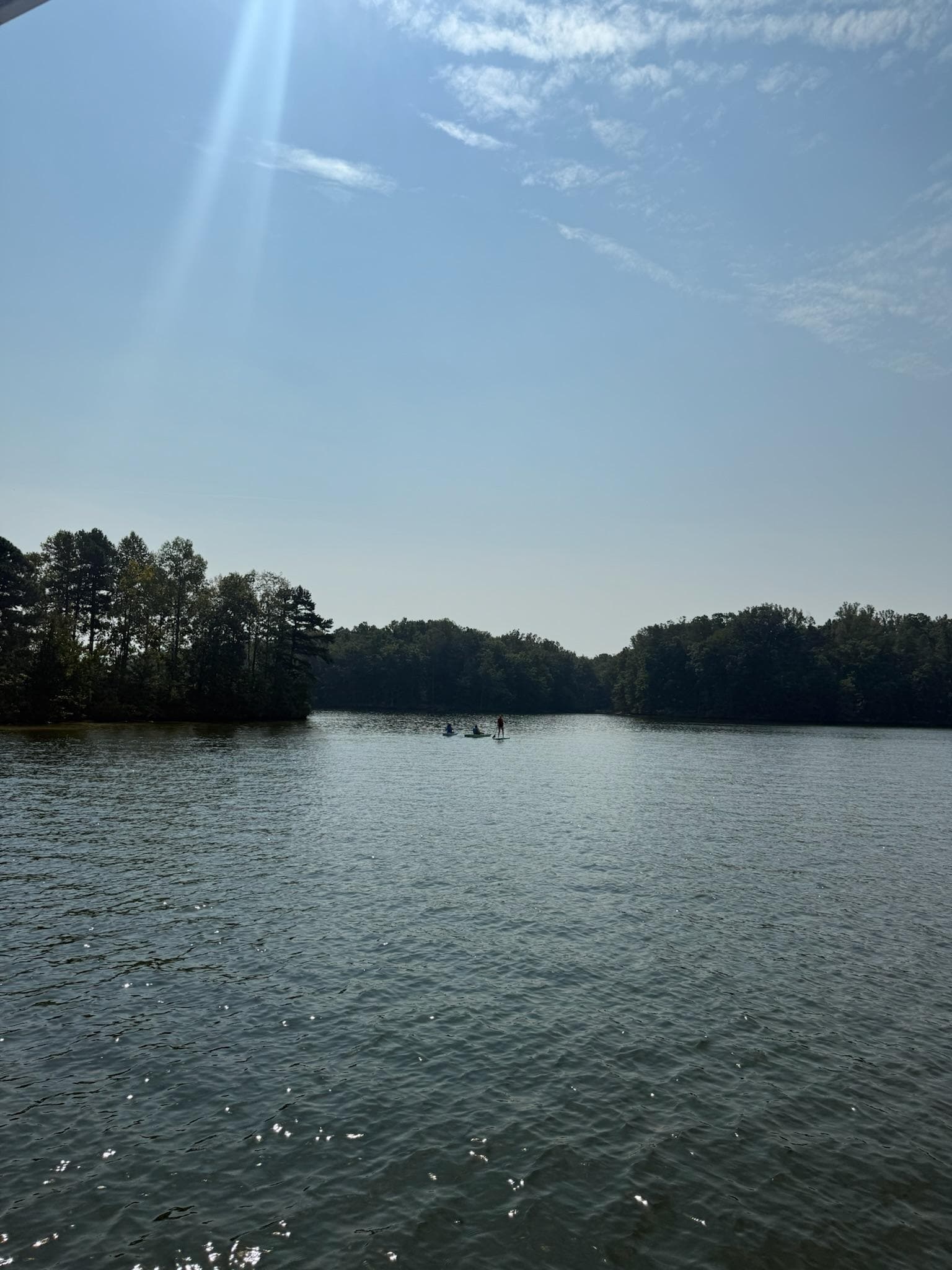 Stand-up paddle boards, kayaks, and a three-person canoe available for rent.