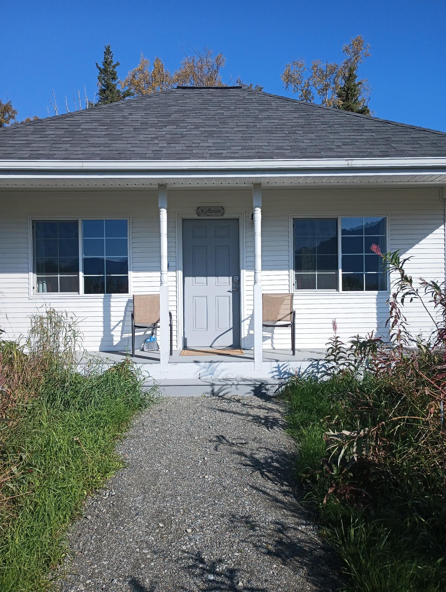 Olemme lähellä Alaskan osavaltion messualueita, kaupungin rajojen ulkopuolella maatila-alueella. Näistä uusista bungaloweista on esteetön näkymä Pioneer Peakiin, joka näyttää upeita auringonlaskuja. Bungalow Sleep 4, queen-vuode ja * amerikkalainen nahka * Tempur-pedic, no bar - vedä nukkuja. Kaikissa bungaloweissa on keittiö, tiski, baarituolit ja kylpyhuone. Mukavuuksiin kuuluu: ilmainen WiFi, kahvinkeitin, astiat / hopeavaatteet, jääkaappi / pakastin, induktiivinen lämmityslevy, kattilat ja pannut, 40 tuuman litteänäyttö Netflixillä