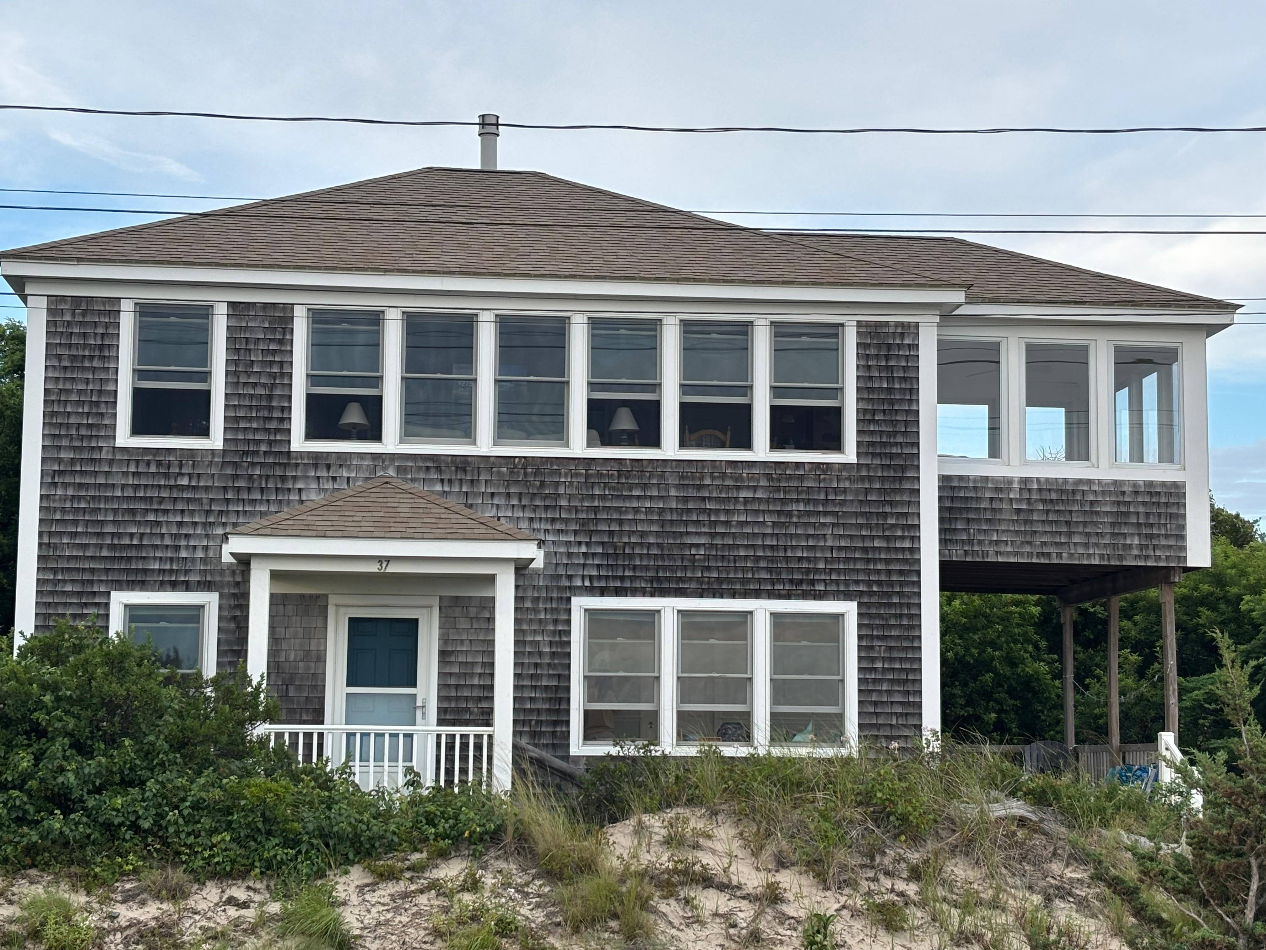 Upea sijainti rannalomallesi! Tämä tilava ja ilmava 1600 neliömetrin avoin pohjaratkaisukodi on aivan Corn Hillin rannalla näköalalla Cape Cod Bayn ja upeaan rannan dyyniin.