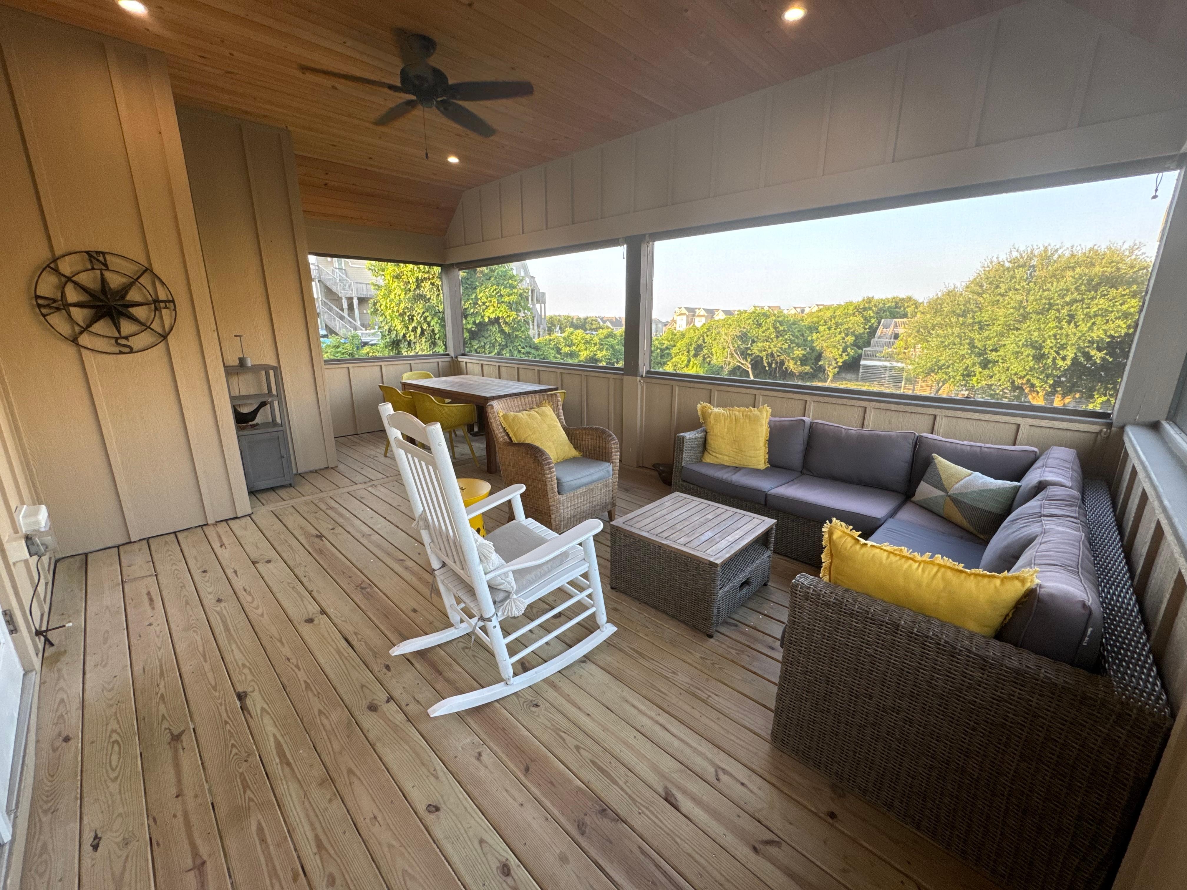Sandy Duck on viehättävä värikäs mökki, joka sijaitsee erinomaisella paikalla - täsmälleen valtameren ja äänen välissä Duckissa, NC. Kymmenen minuutin kävelymatka voi viedä sinut merelle, helpon pääsyn rantatielle rantaan tai ääneen ja viehättävään Duck-kylään, joka tarjoaa ainutlaatuisia kauppoja ja ravintoloita.