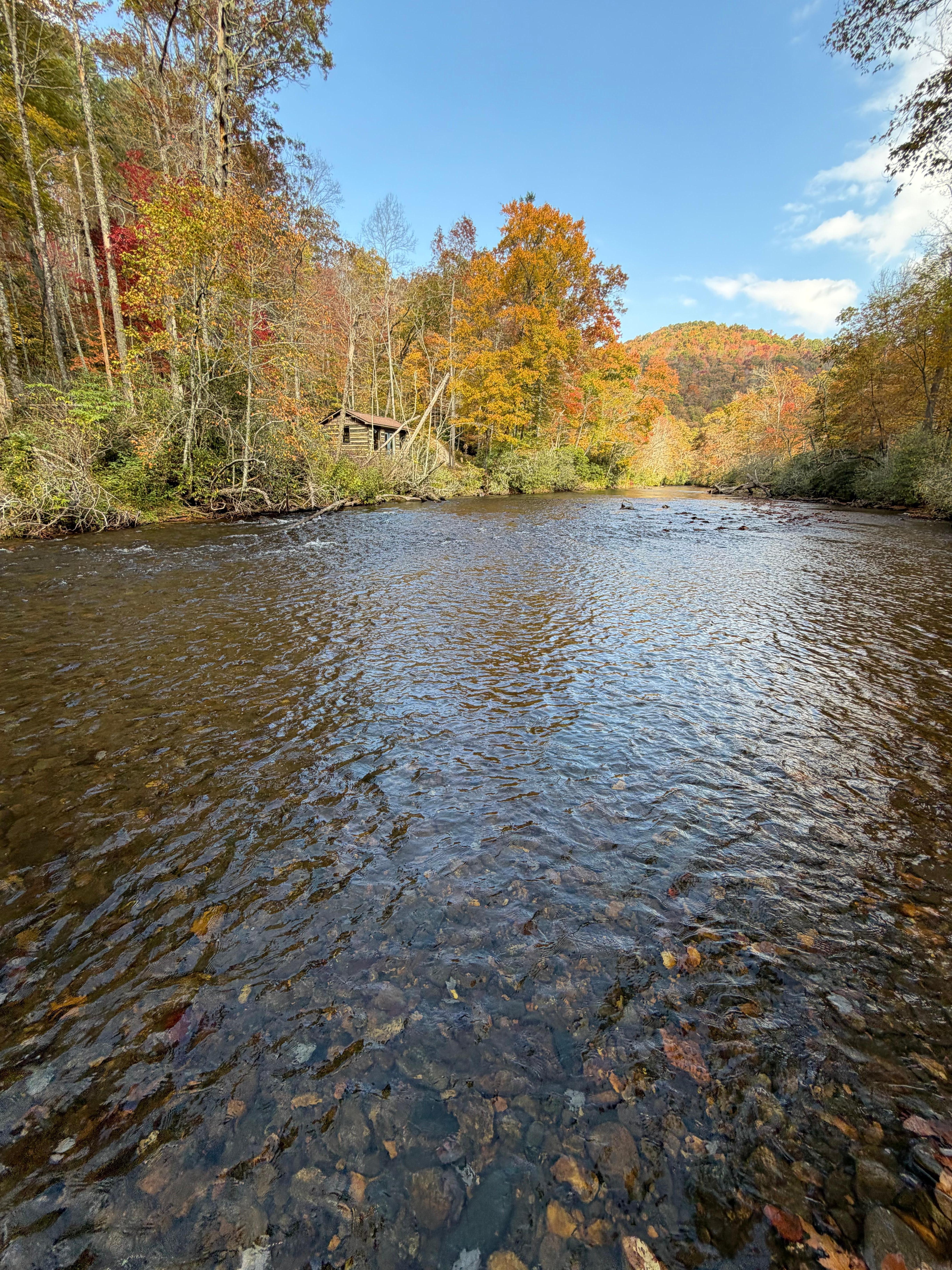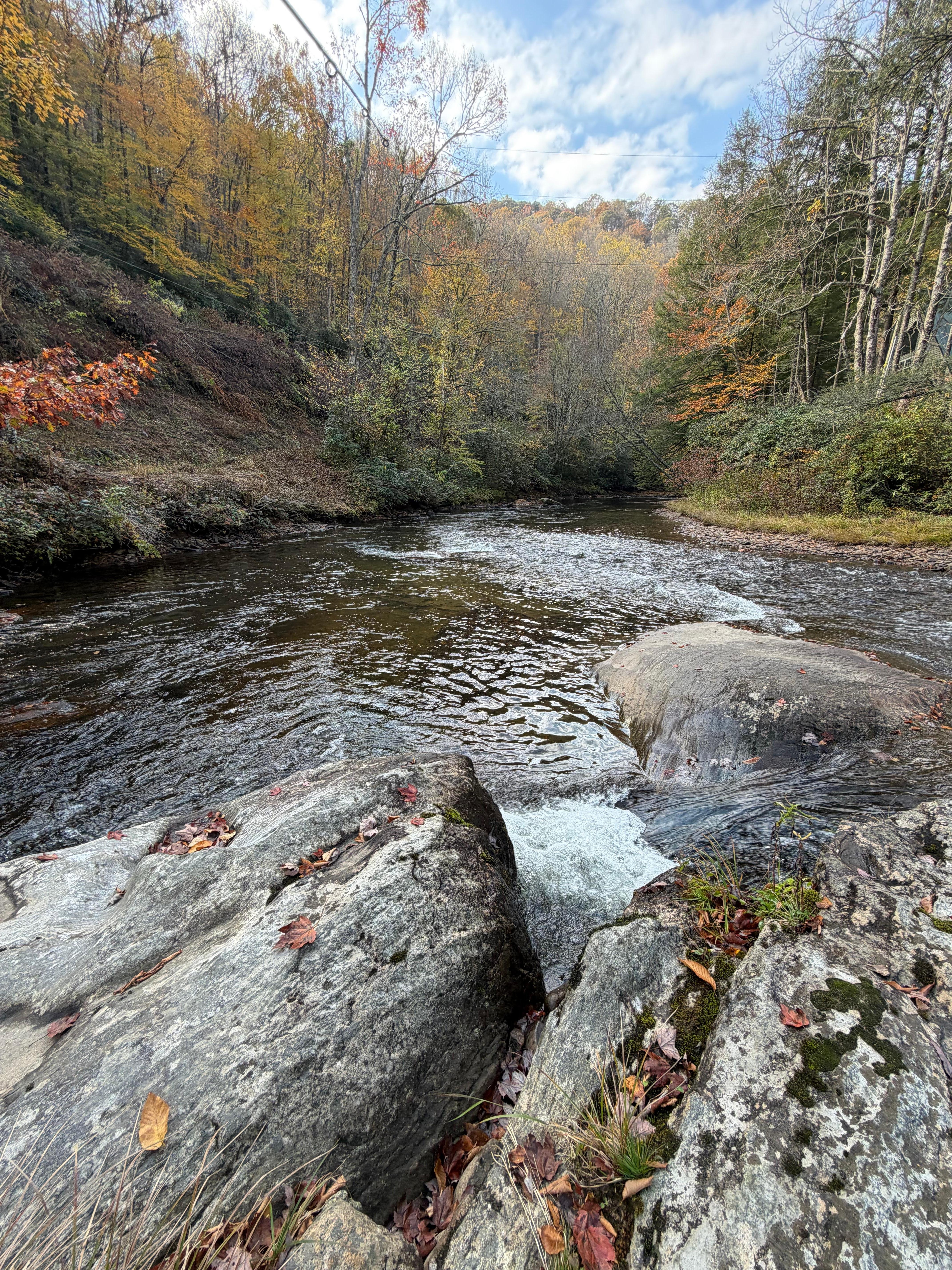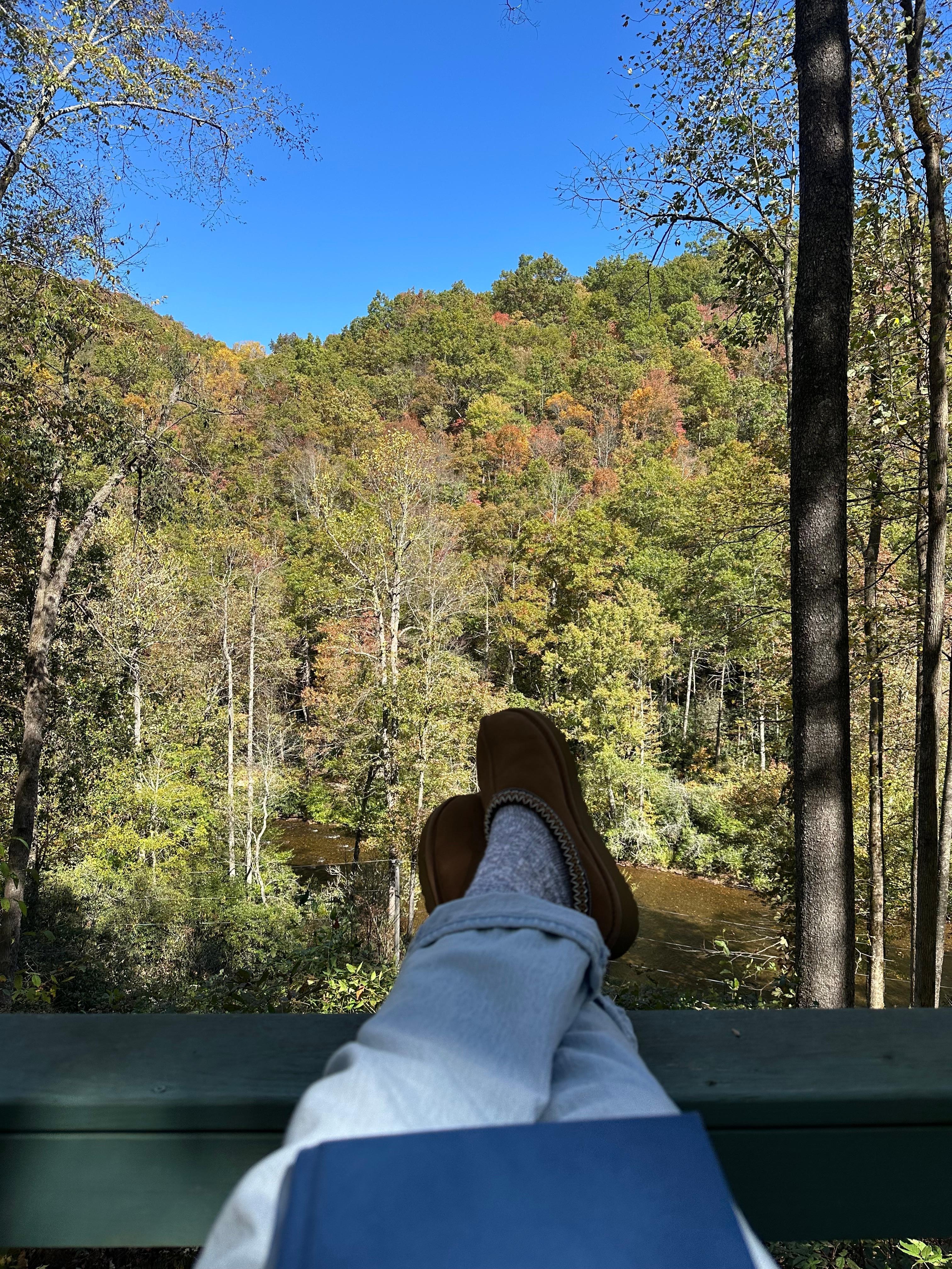 What a special place! Photos do not portray the charm, coziness and connectivity to nature this cabin offers. It tucked back along the river in a peaceful setting with sounds of the river outside and miles of woods to explore. We spent our days walking, playing in the shallow river and picking out beautiful rocks. The home provides plenty of space inside and out for gathering or spending time alone to read a book and relax. We took day trips Franklin and Dillard (wanted to see Pickens Nose on the way), but I think our favorite was the day we spent at the cabin — exploring and just being with our family.