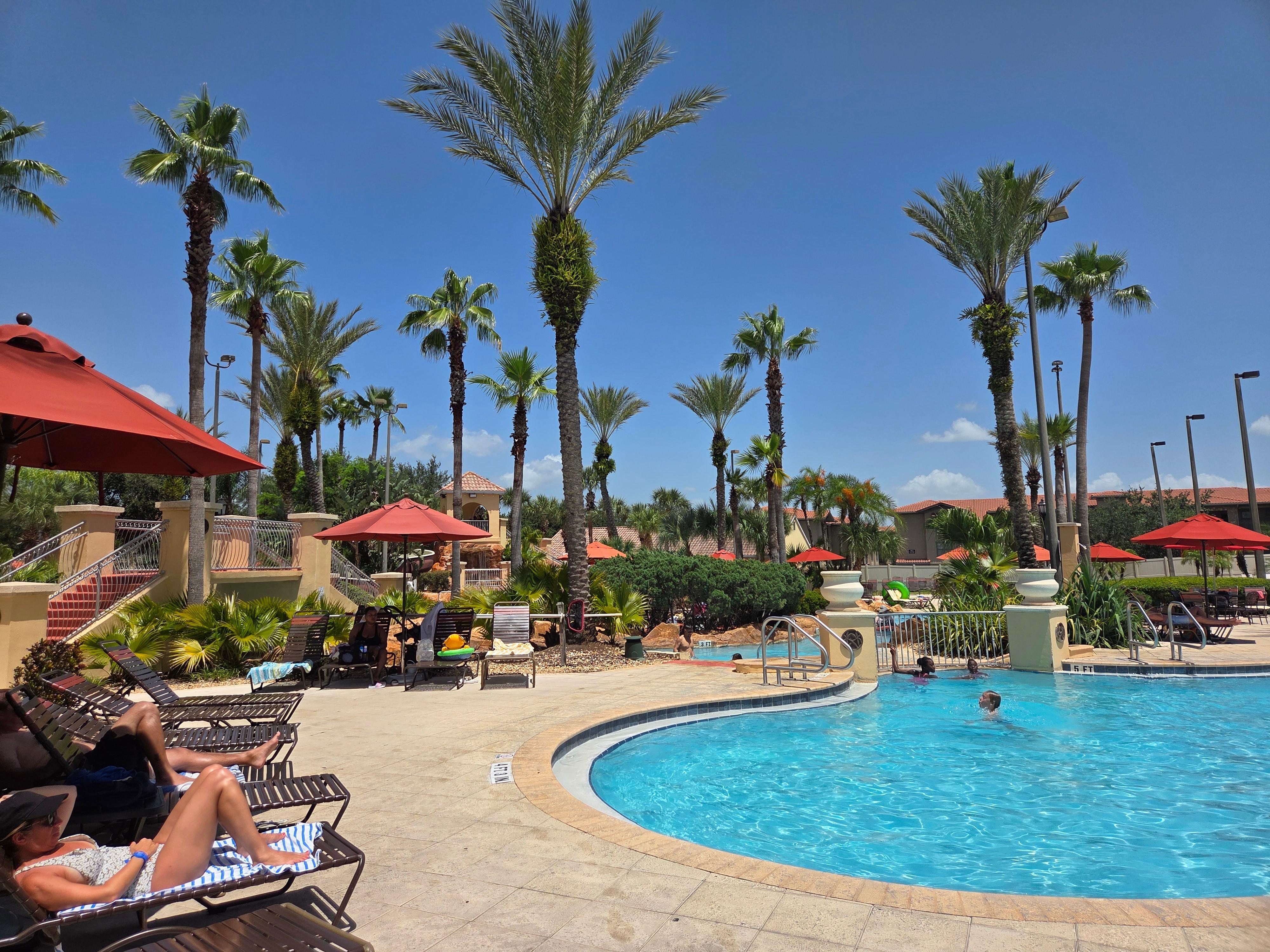 Beautiful 4 bedroom townhouse on the prestigious Regal Palms Resort & Spa. This home is fully furnished to the highest standards and provides all you could want for the perfect family holiday! The living area offers a bright open space for dining and relaxing with high quality coordinated furniture. It has a large flat screen TV with cable channels. A number of DVD's and board games are provided. The open kitchen area has all the appliances and utensils needed for the expert cook and has a phone to order take-aways for those who don't cook! A children's high chair, play pen and stroller is available. The first floor has a bathroom with bath, shower and toilet and 3 additional bedrooms; the master and 2 twin rooms. The master has a King bed, flat screen TV, wardrobes and en-suite with oval bath, shower and toilet. The spacious 2 twin rooms have flat screen TV's 1 twin bed and a bunk bed. The Queen bedroom is on the ground floor and has an en-suite with bath, shower and toilet. This home has no rear neighbors. The resort offers lagoon swimming pools, lazy river, slide and play area as well as clubhouse, game room, gym and spa. Supermarket, shops, banks and restaurants are all within walking distance. Adjacent to the superb Highlands Reserve golf course (par 72) where preferential rates are available. All major attractions within 15 mins. Perfect for a family holiday! The resort has a 24 hour reception, clubhouse with bar and restaurant serving food and drinks from breakfast until late, both inside and outside on the terrace overlooking the pool area. The area is Wi-Fi enabled, has an internet room, games room, fully equipped gym and spa. There is a $20 Per Day/Per House Resort Fee plus tax, which is payable directly To Regal Palms upon your Check in. Pool towels are available in the property. If you prefer to bring your own, that is fine. If you use the Resort Pool Towels you will need to pay a Deposit for Each Towel.