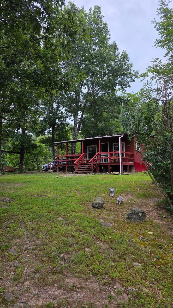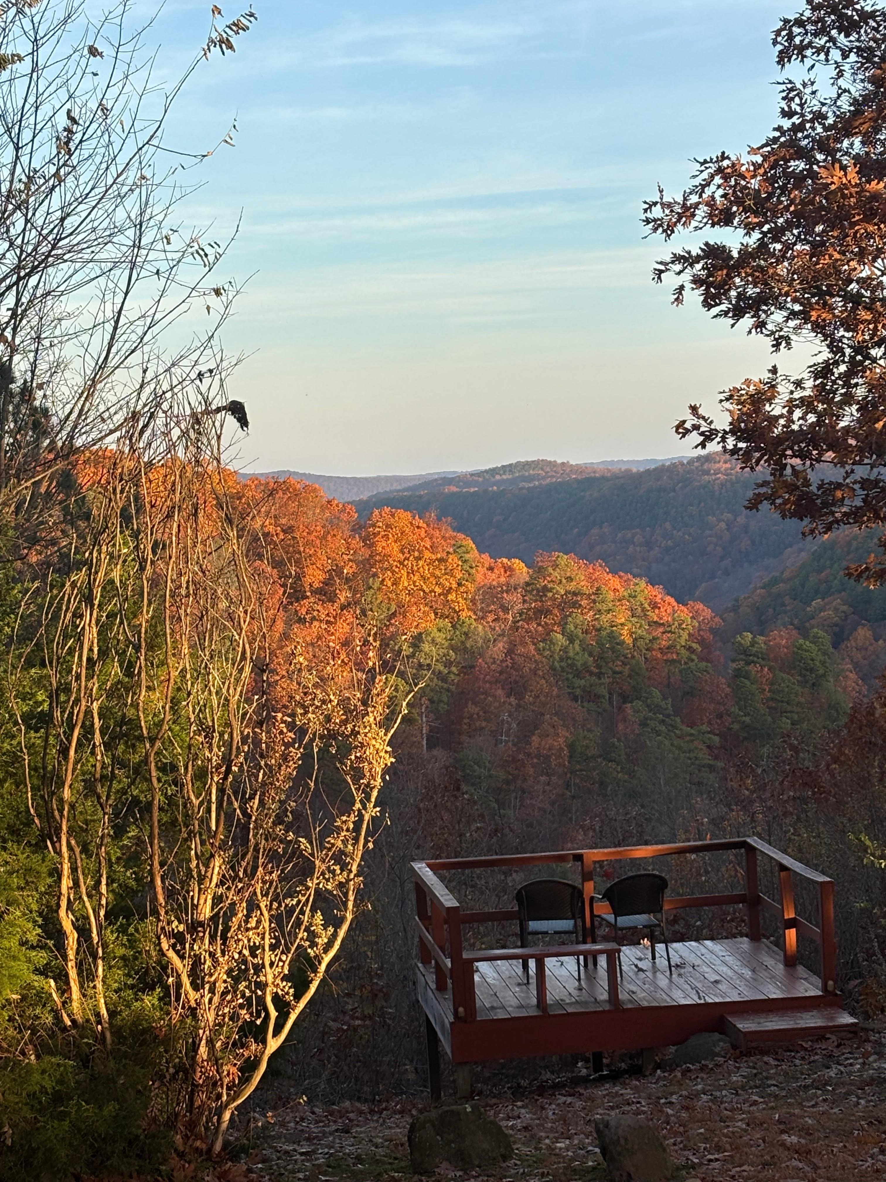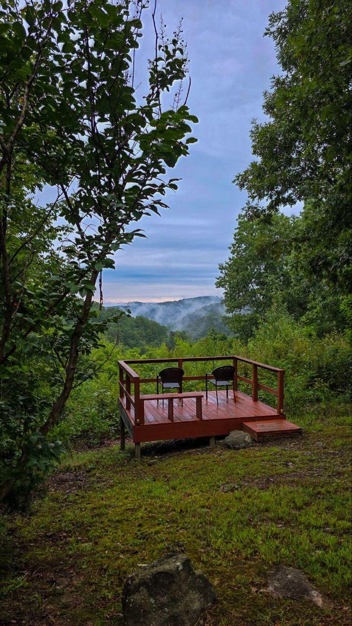 Mökki sijaitsee yksinäisellä bluffilla, josta on henkeäsalpaavat Ozark-vuoristomaisemat. Mökki sijaitsee yksityisellä 40 hehtaarin alueella, joka rajoittuu Ozarkin kansallismetsään, joten se tarjoaa yksityisyyttä ja rauhaa. Se on 2 mailin päässä päällystetyltä moottoritieltä, joten ei ole tien melua tai häiriötekijöitä eikä tien julkisivu. Mökissä on astiat, astiat, lisähuovat, kylpyhuone- ja keittiöpyyhkeet, paperipyyhkeet, wc-paperi ja ilmainen kahvi. Siellä on ulkogrillihella ja avotakka.