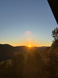 In addition, our cabin offers a cozy well-lit outdoor firepit and picnic area, perfect for enjoying the serene mountain evenings. Indulge in the beauty of the French Broad River Valley, the majesty of the Blue Ridge Mountains, and the comfort of our well-appointed cabin. Book your stay now and experience the joy of mountain living in this serene and captivating setting!"
