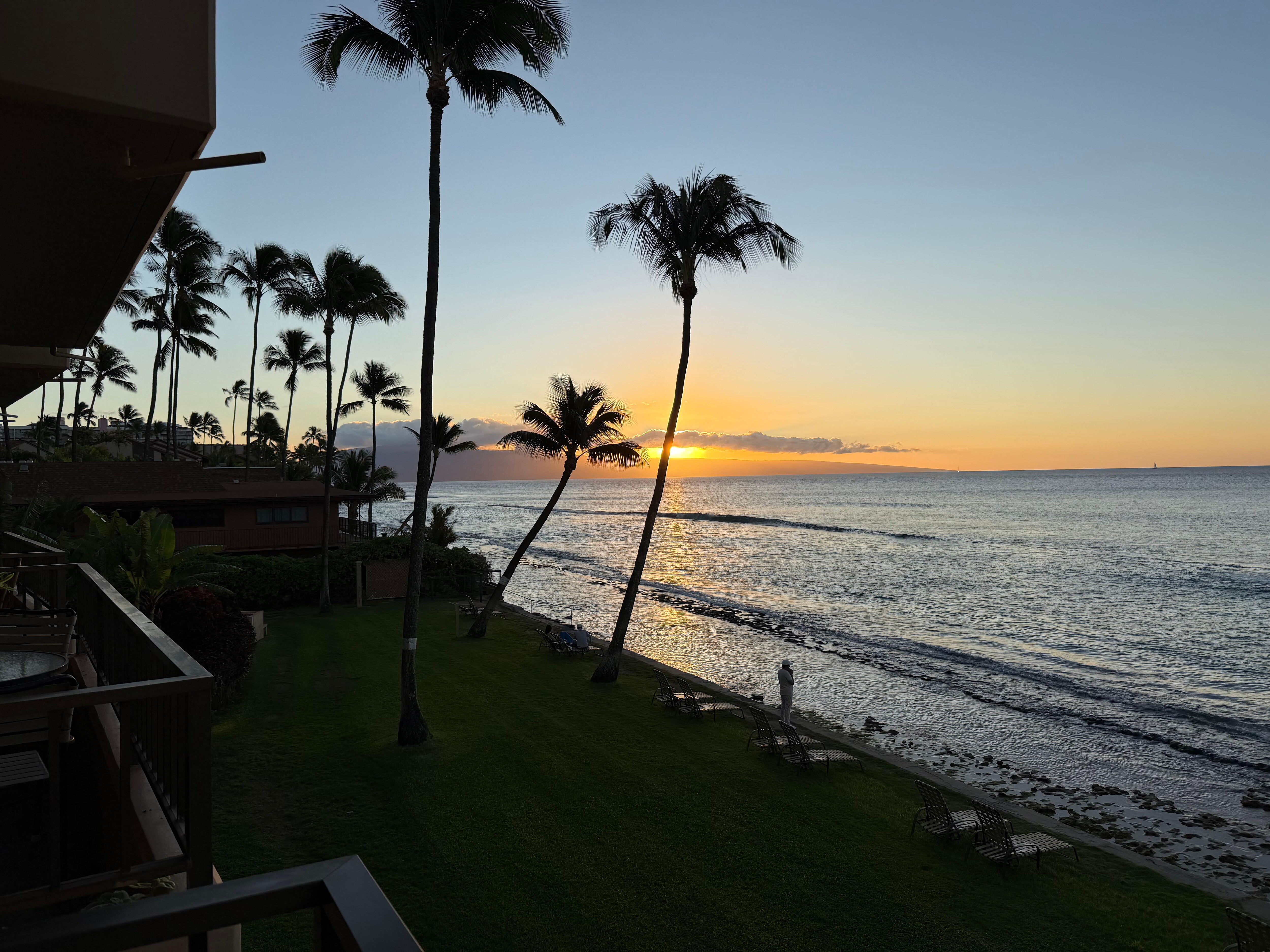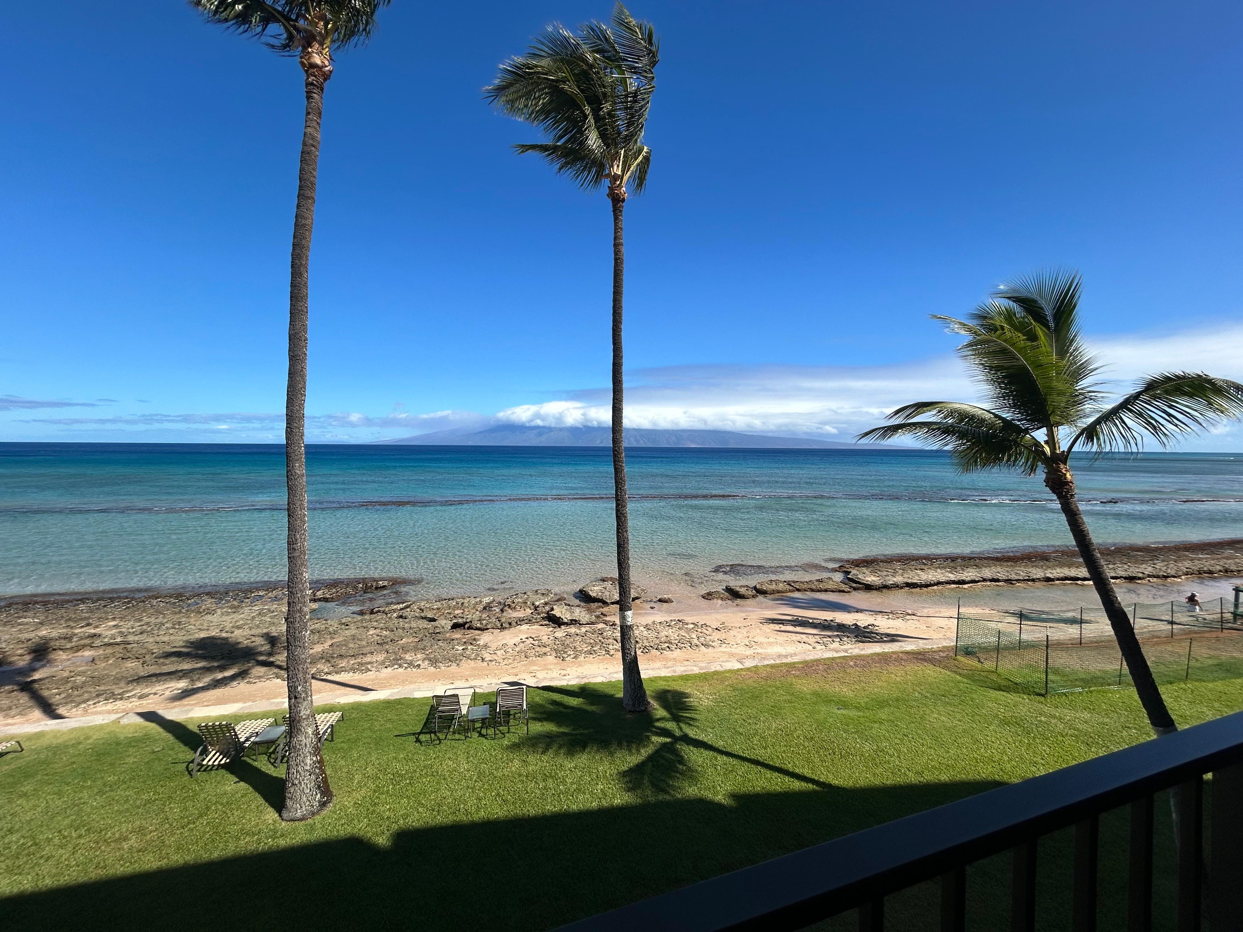Tervehdi naapurisaareita Molokai ja Lanai aloittaessasi päivää. Nauti aamiainen omalla yksityisellä lanaiillasi, kun kuulet sinisen valtameren liikkuvan ja viiniä samalla kun katsot auringonlaskua. Menkää uimaan, ulompi riutta suojaa rantaviivaa rakennuksen edessä. Tai istukaa kiesitiloissa, palmun alla.