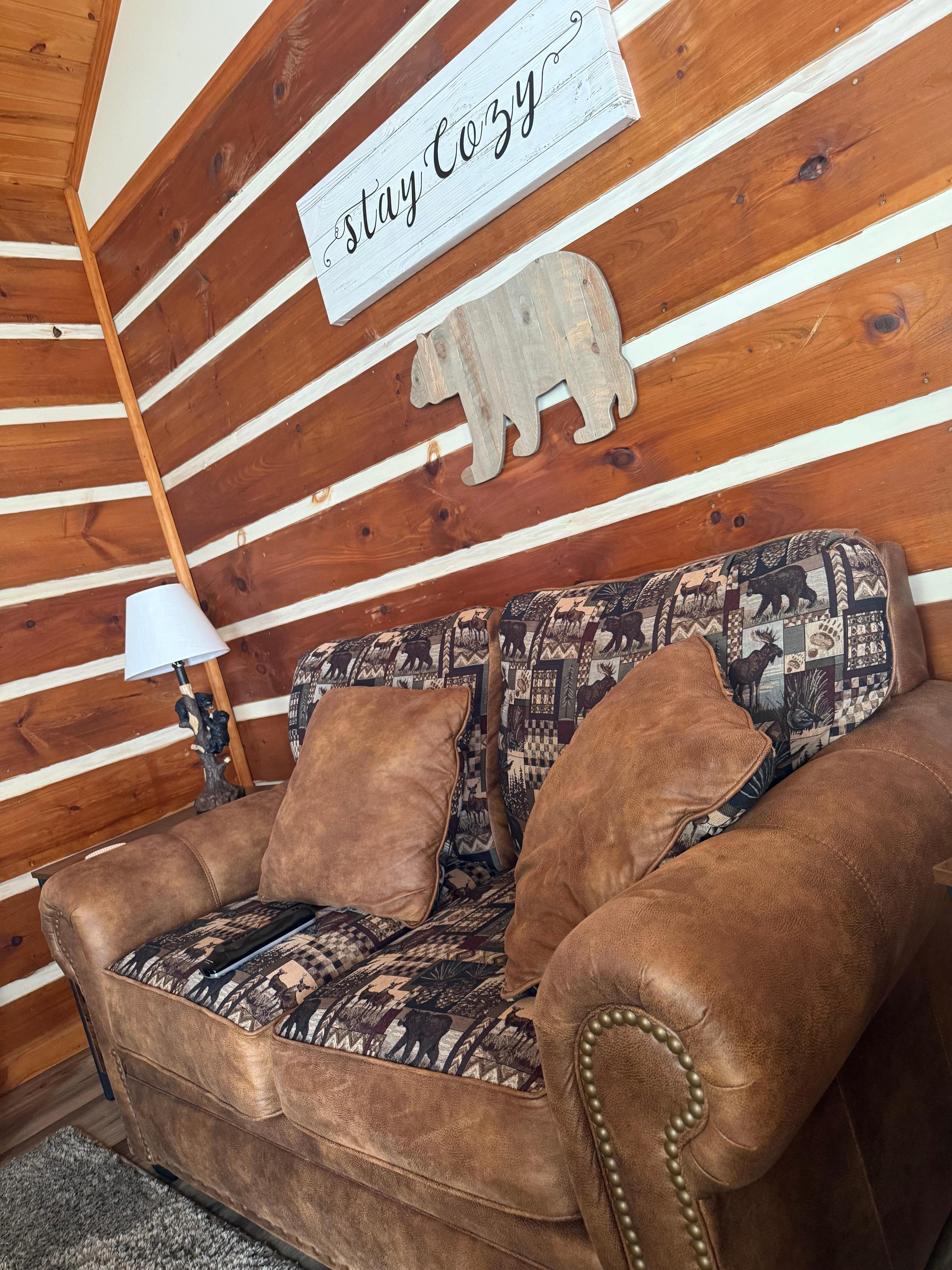This “Little Slice of Bearadise” is the perfect amount of cozy for you and your honey. Whether you want to stay in and lounge by the electric fireplace and watch Netflix, (of course you’d have to log into your own account) or if you would rather relax out on the porch or in the hot tub, we have pretty much all things you would want when you rent our cabin. This cabin has recently been updated with new furniture and new floors throughout.