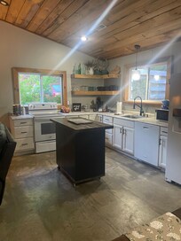 The property was designed to be a primary residence and will definitely make you feel right at home. Offering a modern loft set up, this Cottage has a fully open concept featuring reclaimed barnwood and metal ceilings, organic tile and concrete floors. The full front porch with porch swing is the perfect place to drink your morning coffee.