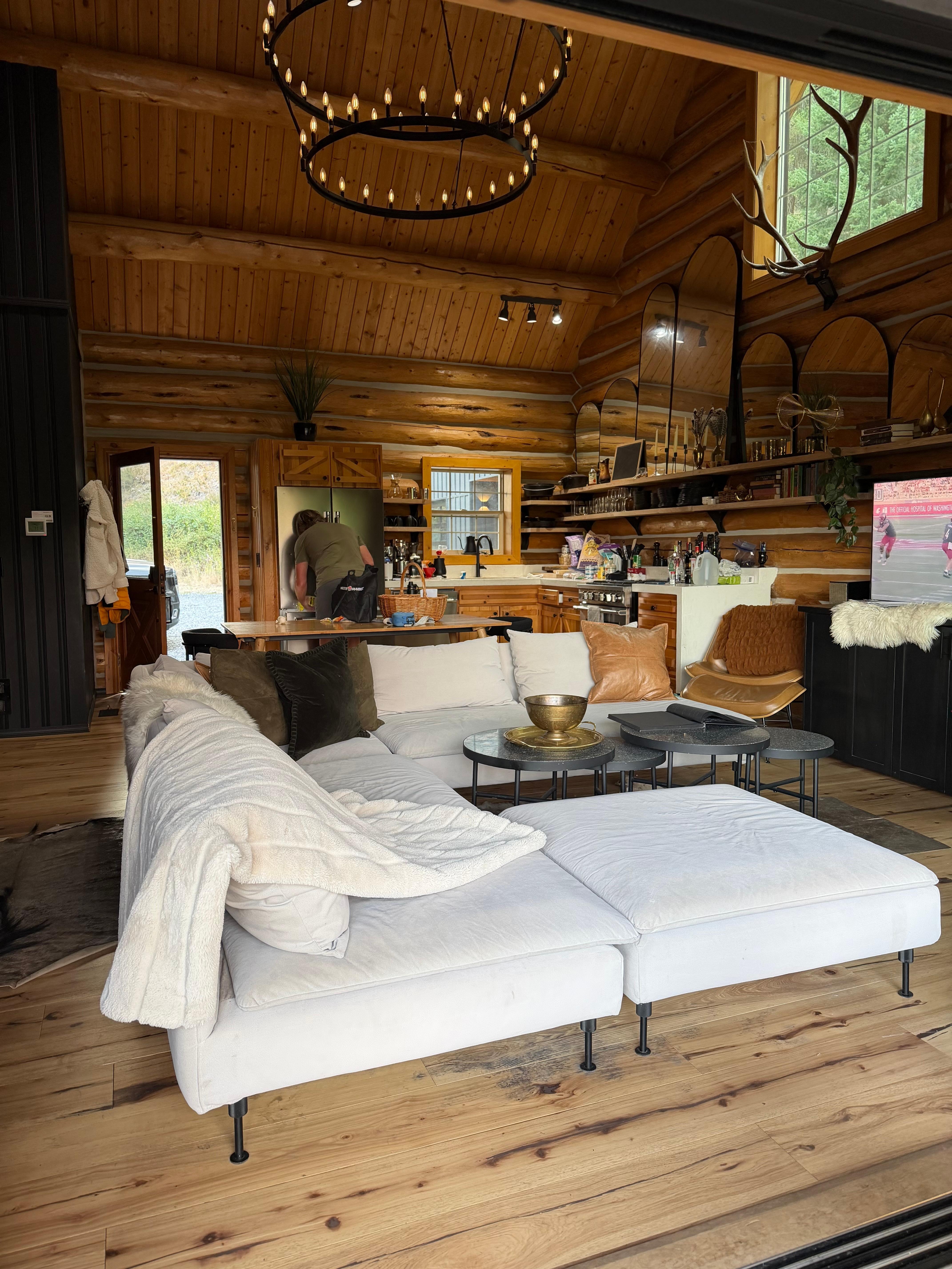 The cabin was super cute. It’s small but worked fine for my husband and I and our two boys, and my dad. Well stocked kitchen and we loved that there were things like condiments, salt and pepper etc. great place to get out doors and go for long, pretty walks, the river was pretty too. The hot tub was a bonus. There was a burn ban while we were there, but would have love an outdoor fire. We will be back!