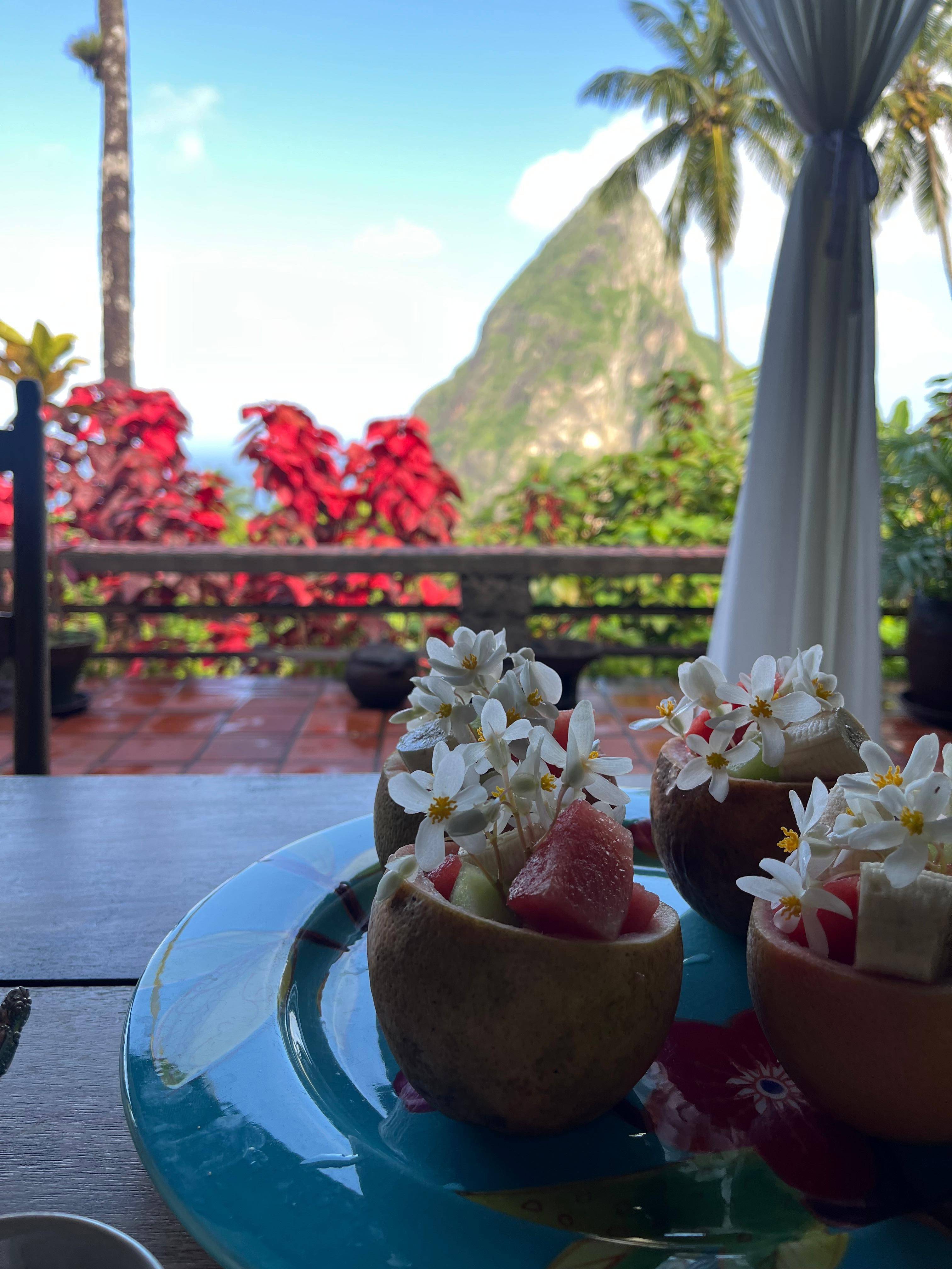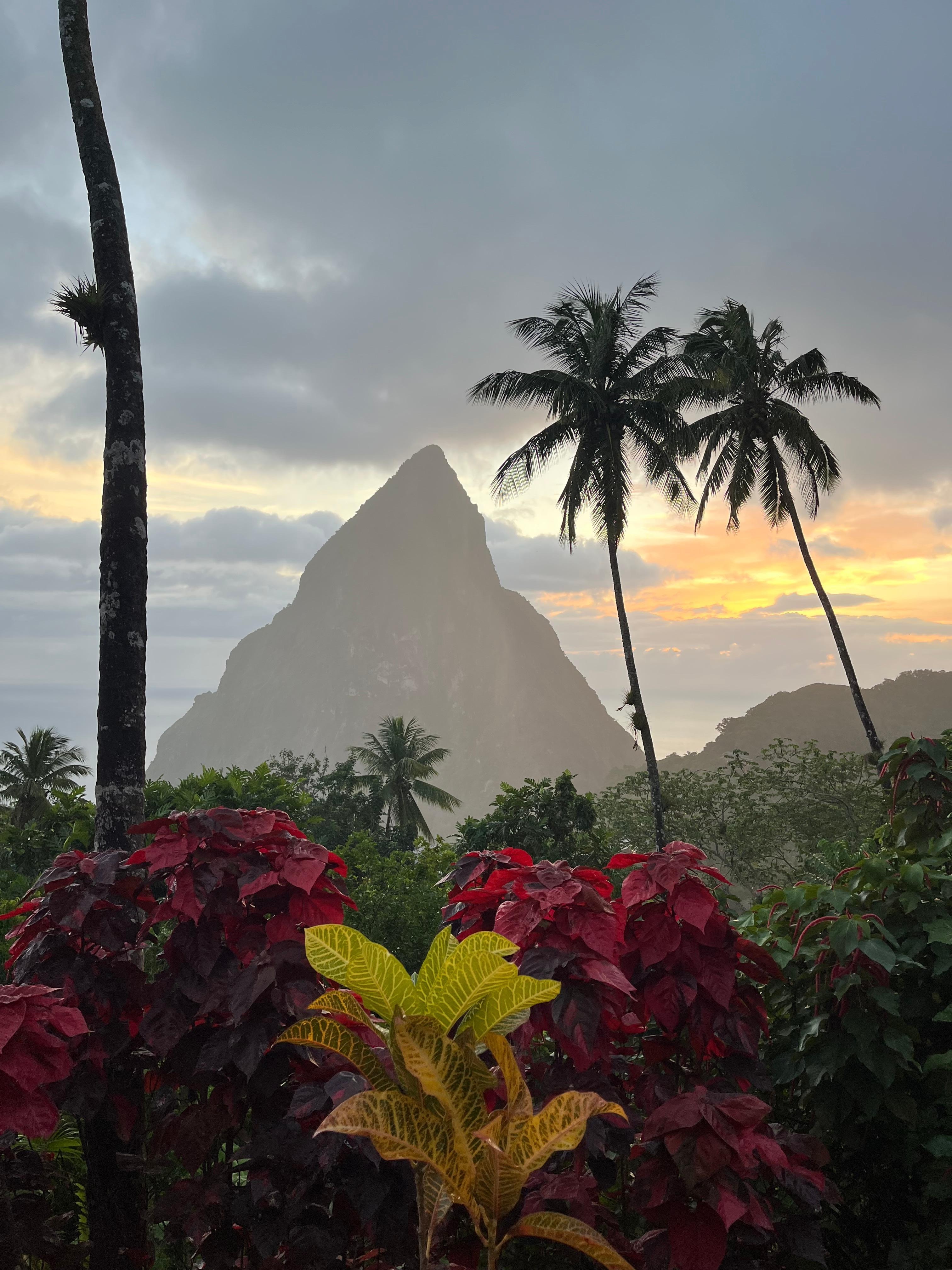 Our rustic villa is nestled on a lush volcano ridgeline in the Rabot Estate with awe inspiring views of the iconic Petit Piton Mountain, a UNESCO World Heritage Site and the Caribbean Sea.