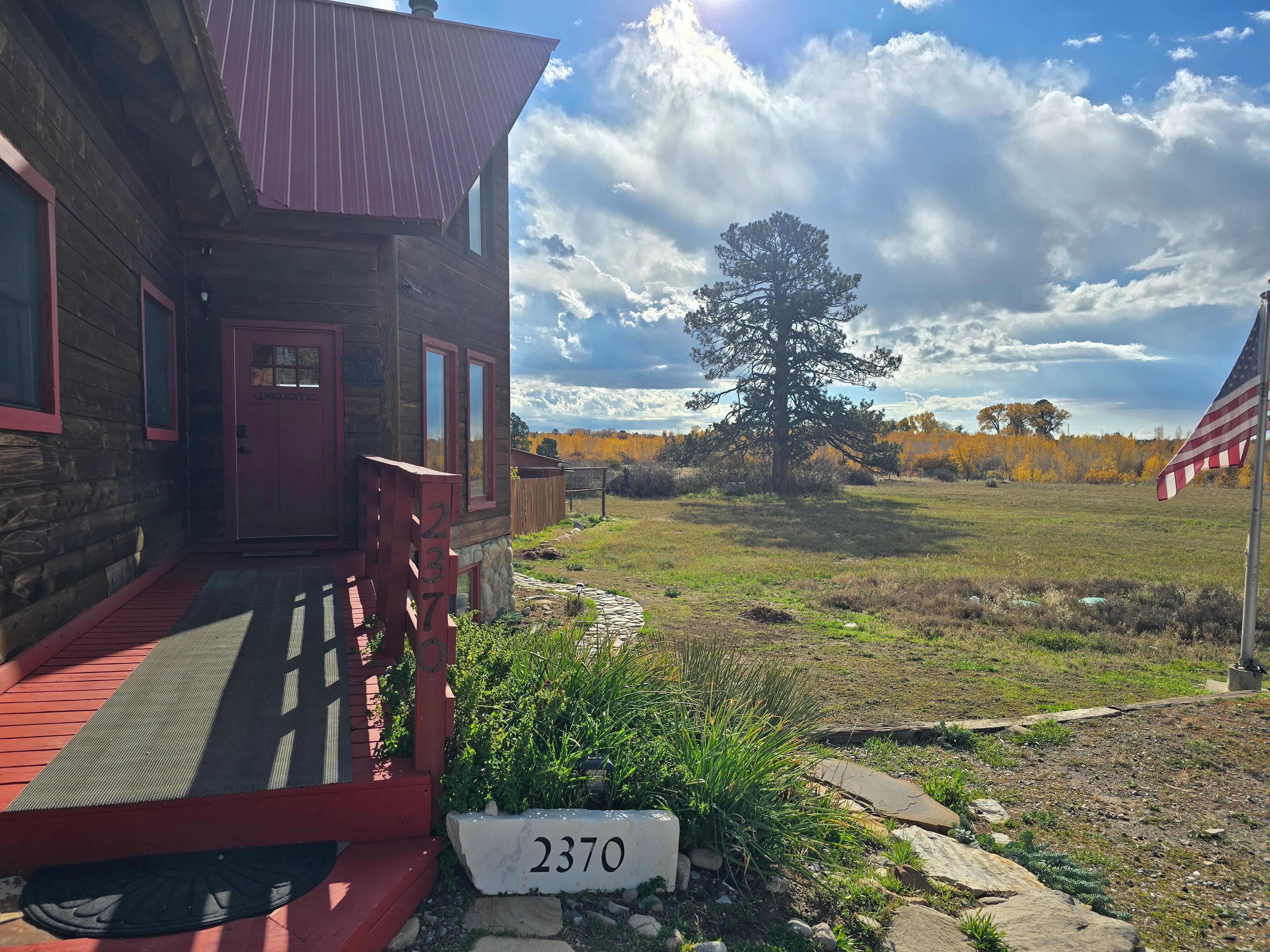 Trinity Ranch Rescue presents Kevin's Cabin! A 3,300 sqft log cabin just outside Durango city limits. This majestic 3 story cabin sits on 12 tranquil acres with a pond fed by La Plata River. Enjoy the hot tub while star gazing, sauna, shuffle board and viewing deck. The cabin is pet friendly (please disclose pets at time of booking to apply pet fee) with a fenced yard. Great central location for adventures, family gatherings and romantic getaways any time of the year!