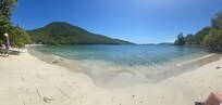 We choose this property because of it's proximity to the beach and the sea 100 feet away! St. John is a small 20 square mile mountainous island with a limited number of properties that are on the water. Rebecca's Fancy is less than a quarter mile from the end of the road that begins at the ferry dock in Cruz Bay. This provides us a very quiet, peaceful place to live and enjoy all that St John has to offer.