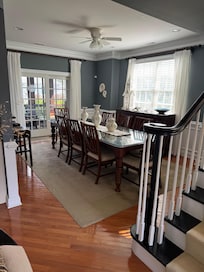 L'Ocean Breeze a deux zones centrales air / chaleur et deux cheminĂ©es, une dans le salon et l'autre dans la suite parentale au deuxiĂšme Ă©tage. Il y a des tĂ©lĂ©viseurs HD Ă grand Ă©cran dans le salon et la suite principale au 2Ăšme Ă©tage, tous deux avec HDDVR et lecteurs DVD. La grande salle Ă manger peut accueillir 13 personnes trĂšs confortablement. La cuisine gastronomique spacieuse contient un coin petit-dĂ©jeuner pouvant accueillir 8 personnes. Profitez d'un barbecue sur le gril Ă gaz extĂ©rieur dans le patio extĂ©rieur meublĂ©. Pour les moments oĂč les appels professionnels, nous avons un accĂšs Internet haut dĂ©bit WiFi et LAN dans toute la maison et un bureau avec un grand bureau. Il y a une table de jeu au troisiĂšme Ă©tage pour mini-billard / ping-pong / jeux de cartes. Beaucoup, beaucoup d'endroits pour la dĂ©tente, la conversation et la lecture sur notre vĂ©randa meublĂ©e et deux porches grillagĂ©s arriĂšre meublĂ©s. Le salon a de la place pour les rĂ©unions de famille avec deux canapĂ©s, deux causeuses et une chaise rembourrĂ©e. Profitez de notre vaste bibliothĂšque de livres de fiction, de non-fiction, d'art, de nourriture et de voyage. Beaucoup de livres sur l'histoire de Cape May.