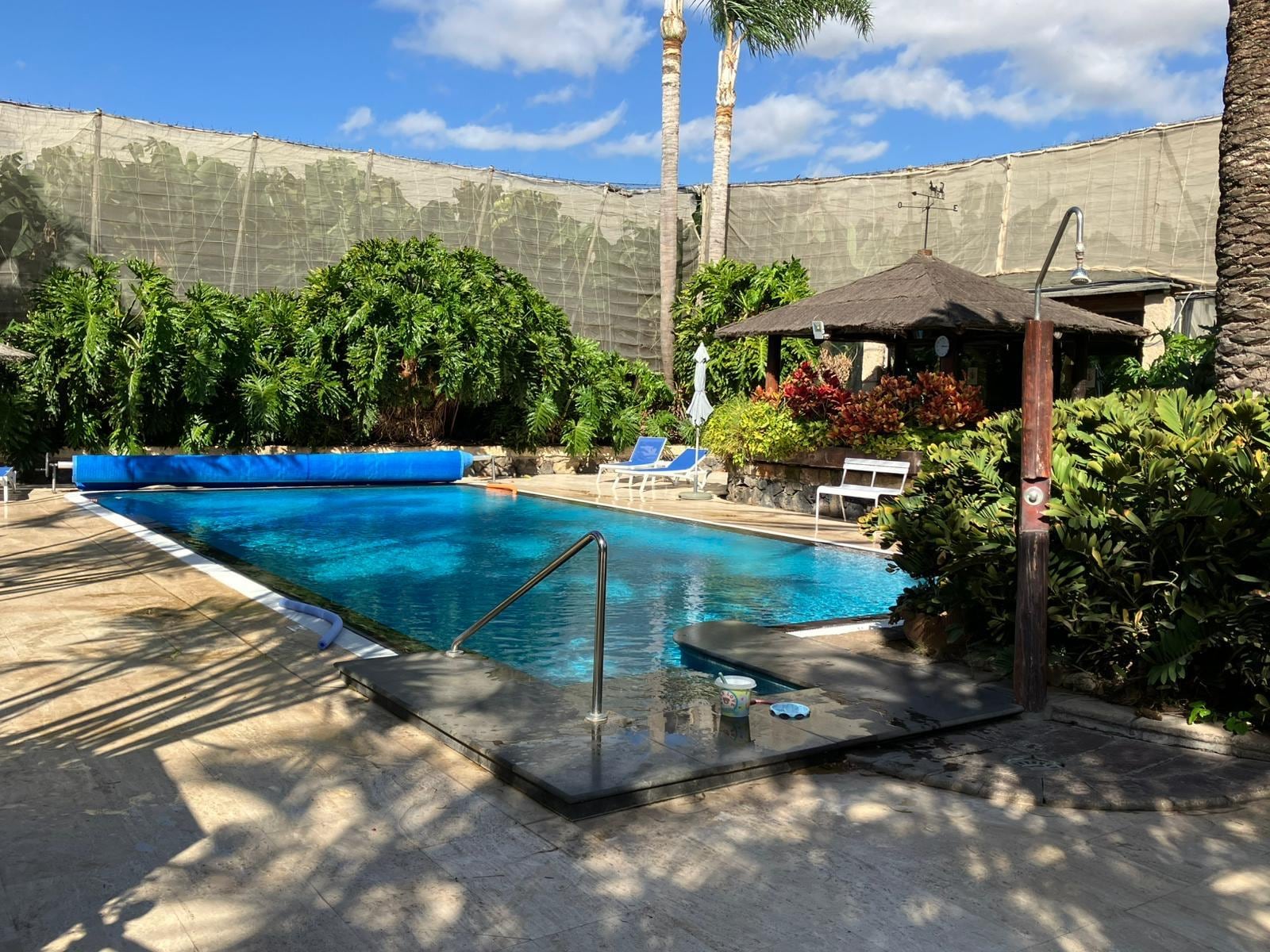 This house is inside a Banana Plantation & Little Group of Houses which Star is a "Really Heated" Pool ideal for swimming, as its size is 13 m x 5 m. On a quiet part of the very south of Tenerife, this banana plantation has been there for more than 100 years. Pool is shared with a few more houses. There is also a BBQ area + reading room near the shared pool. Fibre wi-fi. Free Mineral water + Spring water dispenser. Sustainable houses: solar panels for hot water + installing for electricity now