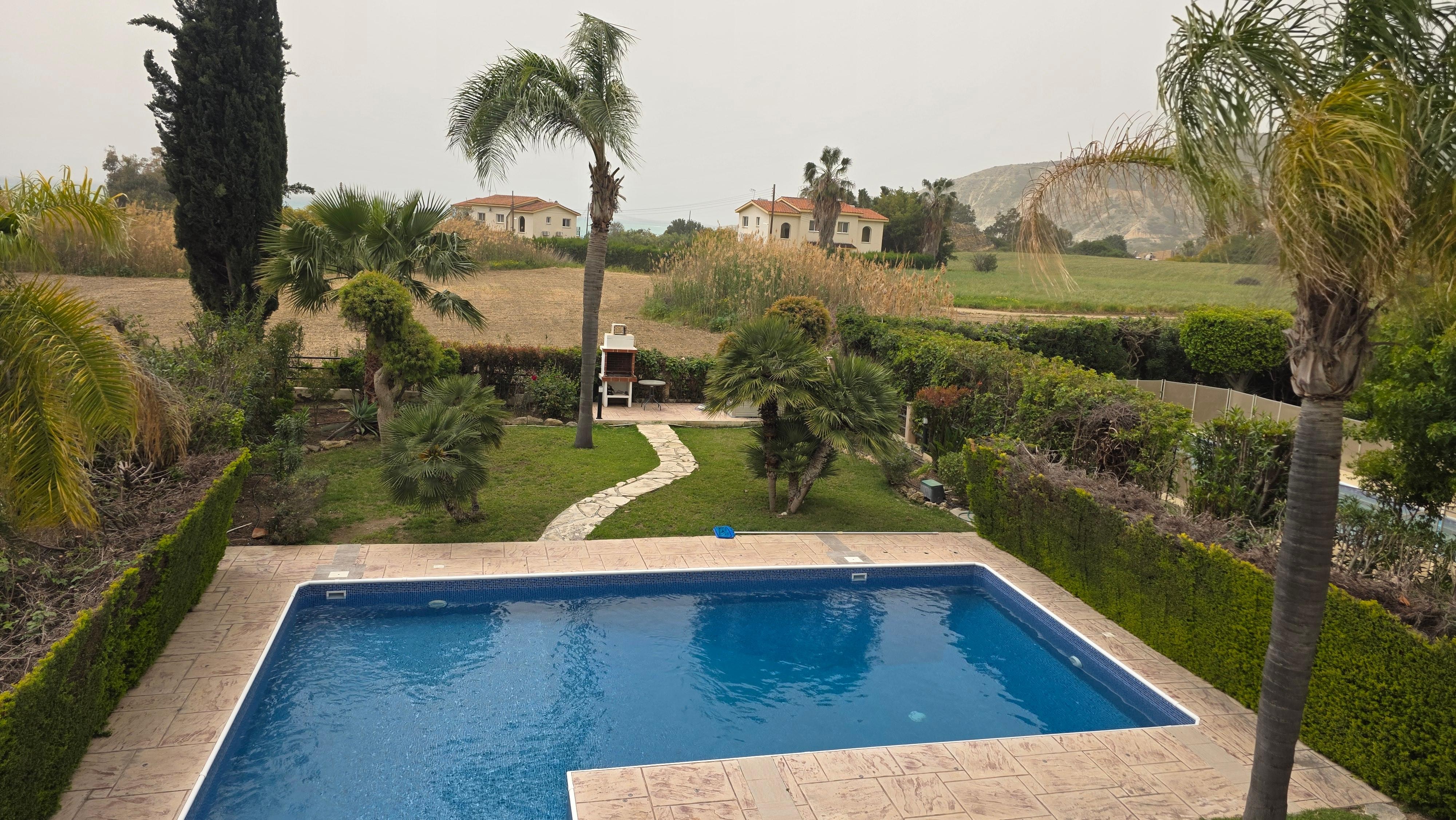 Outdoor areas The villa offers a mature secure garden, the garden, terrace and pool all provide adequate mood lighting to enhance the evening holiday theme. There are four sun loungers for those who wish to soak up the Cypriot sunshine.