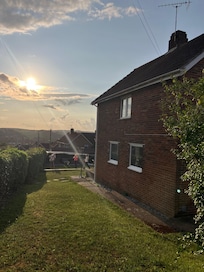 End of terrace, 3 bedrooms (2 double, 1 single bunk bed) 1 bathroom with a bath and a shower, fully equipped kitchen (blender, air fryer, coffee machine, microwave, washing machine, dryer) living/dining room desk space.