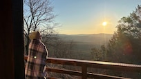 Our cabins are brand new! The first 2 were completed and put into rental market November 22nd 2017. The next 2 will be completed January 10th 2018. Indian Lookout Mountain Cabins offer secluded one-bedroom luxury cabins. Our lavishly equipped cabins offer the perfect retreat for honeymoons, anniversaries and lovers getaways, but will also accommodate any couple or two, or even a small family, with itâs king bed and deluxe queen inflatable bed. All cabins are equipped with sliding patio doors that face East to offer an amazing one of a kind view of the Boktuklo Mountains and the most spectacular sunrises you will ever experience. The sliding doors open onto a large deck equipped with hot tub, hammock for two and patio dining and gas grill. The view from the patio will be well worth the trip. When you gaze from the patio there is a quiet and beauty in the air that you can only experience in places of nature well away from noise and activity of the city. You will experience a peace and calmness that only comes in the solitude of nature. Please bring your cameras, the photo opportunities are once in a lifetime.