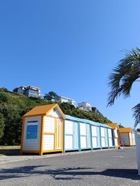 La grande plage de sable fin avec piscine d'eau de mer, sâĂ©tend sur plusieurs kilomĂštres en direction de BrĂ©ville-sur-Mer. Elle est Ă©quipĂ©e dâun poste de secours, de dispositifs pour personnes Ă mobilitĂ© rĂ©duite, dâun plongeoir et dâune piscine dâeau de mer. Sur la digue promenade, vous trouverez Ă©galement quelques tables de pique-nique, idĂ©ales pour vos repas face Ă la mer.