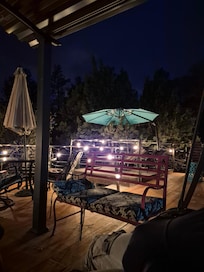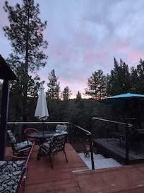Terrain clĂŽturĂ© d'un acre en face de la forĂȘt domaniale. Beaucoup de stationnement et beaucoup d'espace extĂ©rieur, y compris une terrasse rĂ©novĂ©e de 800 pieds carrĂ©s avec garde-corps. Il dispose de deux chambres privĂ©es et d'une chambre avec lits superposĂ©s pouvant accueillir 6 personnes. A un gĂ©ant Jenga et des jeux de lancer de sac sur place. A Apple TV avec Netflix et prime et beaucoup de films Ă insĂ©rer dans un lecteur DVD. Cette cabine a tout ce dont vous avez besoin pour un excellent sĂ©jour. Cuisine complĂšte et toutes les nĂ©cessitĂ©s.