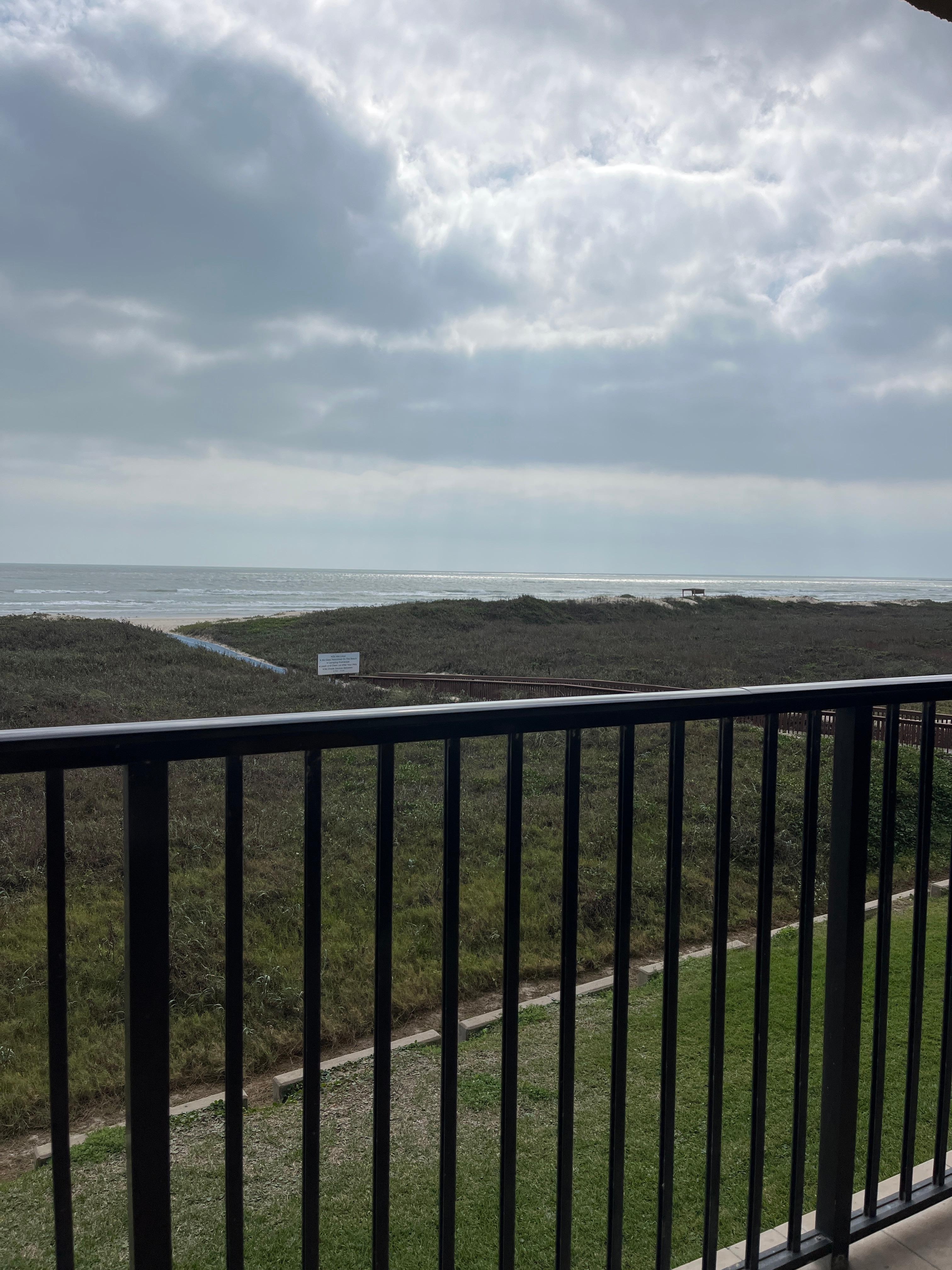 The perfect beach vacation awaits you in our beachfront 3 bedroom/2 bath condo located in the well maintained, gated beachfront Sea Vista complex located next to the Beach Park at Isla Blanca (formerly Schlitterbahn Beach and Water Park). The Sea Vista complex offers 2 swimming pools and hot tubs, 2 tennis/pickle ball courts, charcoal grilling station, free secure on-site parking and direct private access to the beach, just steps from your door. Our beachfront 2nd. floor condo has inside elevator access. Once you walk in the door, there is nothing but dunes, beach and sea...all for your enjoyment. The living/dining area and the master suite have wall-to-wall, floor-to-ceiling windows with the most amazing view of the Gulf of Mexico. Imagine waking up after a restful night of sleep to a magnificent sunrise...it just doesn't get any better than that!!! This same view can also be enjoyed from the kitchen while preparing that gourmet meal. Relax on the spacious balcony sipping your favorite beverage and feeling the gulf breezes while watching the ships and shrimp boats come and go or the occasional pod of dolphins play in the surf. The beachfront master suite has a king size bed and a small sitting area. The en-suite has a tub/shower combination and a quartz countertop vanity. The second bedroom also has a king size bed and a twin size trundle bed. This bedroom comfortably sleeps 4. The third bedroom has 2 queen size beds and can comfortably sleep 4 as well. The two guest bedrooms share the guest bathroom which has a walk-in shower and a quartz countertop vanity. All 3 bedrooms have their own dressers, closets, large flat screen TVs and sitting areas. The bedrooms and bathrooms are outfitted with luxury linens and towels. We also provide a Pack-N-Play for your little one. Paper products and soaps are provided to get you started, even shampoo and conditioner. The kitchen, with a quartz countertop has a range, microwave, dishwasher, and a refrigerator with ice maker. It is stocked with high quality dishes, glassware, flatware, pots and pans and a starter supply of herbs and spices. As well as several small kitchen appliances to enhance your cooking pleasure. Paper towels and trash bags are supplied to get you started and there are some cleaning supplies. To increase your vacation pleasure, there are 4 large flat screen TVs with Spectrum cable and free password protected WiFi. The condo is fully air conditioned and has 4 ceiling fans...1 in each bedroom plus the living/dining area. A full size washer and dryer are conveniently located inside the condo. A starter supply of laundry products is provided. For your beach time enjoyment, we provide beach towels, beach chairs, a beach umbrella, boogie boards and some sand toys to build that amazing sand castle. As a guest of Sea Vista you may purchase discounted Beach Park at Isla Blanca (Schlitterbahn) tickets available only through the Sea Vista office during the summer. There are many good restaurants and bars located nearby, many within walking distance. The dolphin-watch boat rides leave from the nearby pier on the west side of Padre Blvd. Relax and enjoy your vacation.