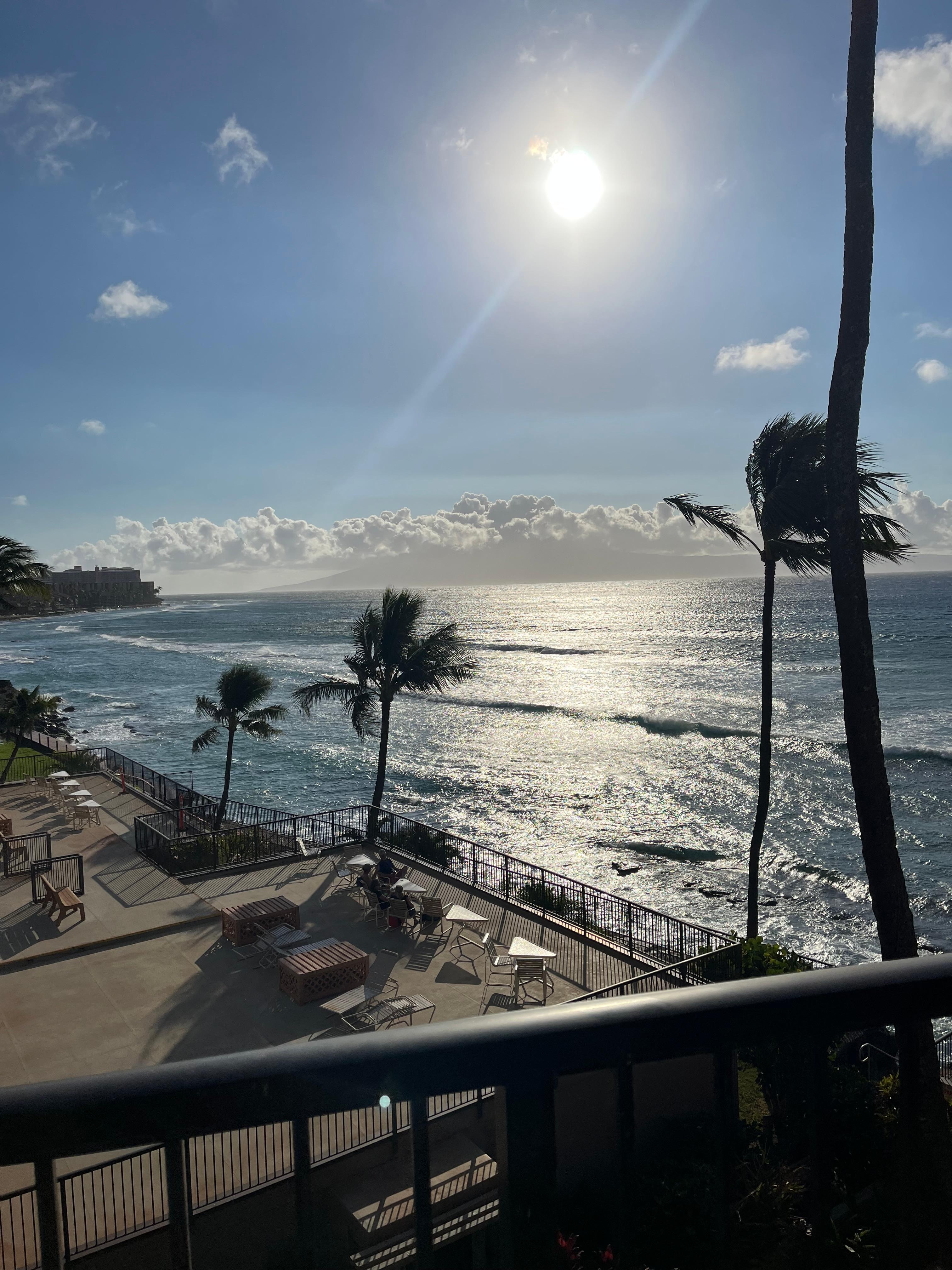 Une vue directe et imprenable sur l'océan, une vue complÚte de l'ßle de Lana'i, toutes les couleurs de l'océan, des couchers de soleil spectaculaires, de beaux palmiers se balançant, des vues de haut en bas de la cÎte et des tortues de mer qui surplombent le récif ne sont que quelques-uns des sites quotidiens que vous apprécierez de ce dernier étage, condo en bord de mer situé juste aprÚs la communauté de villégiature de Kaanapali. Situé sur le cÎté océan de Lower Honoapiilani Road, à seulement trois unités du rivage, vous allez vous endormir et vous réveiller au son apaisant de l'océan. Vous adorerez les alizés frais soufflant à travers l'unité.