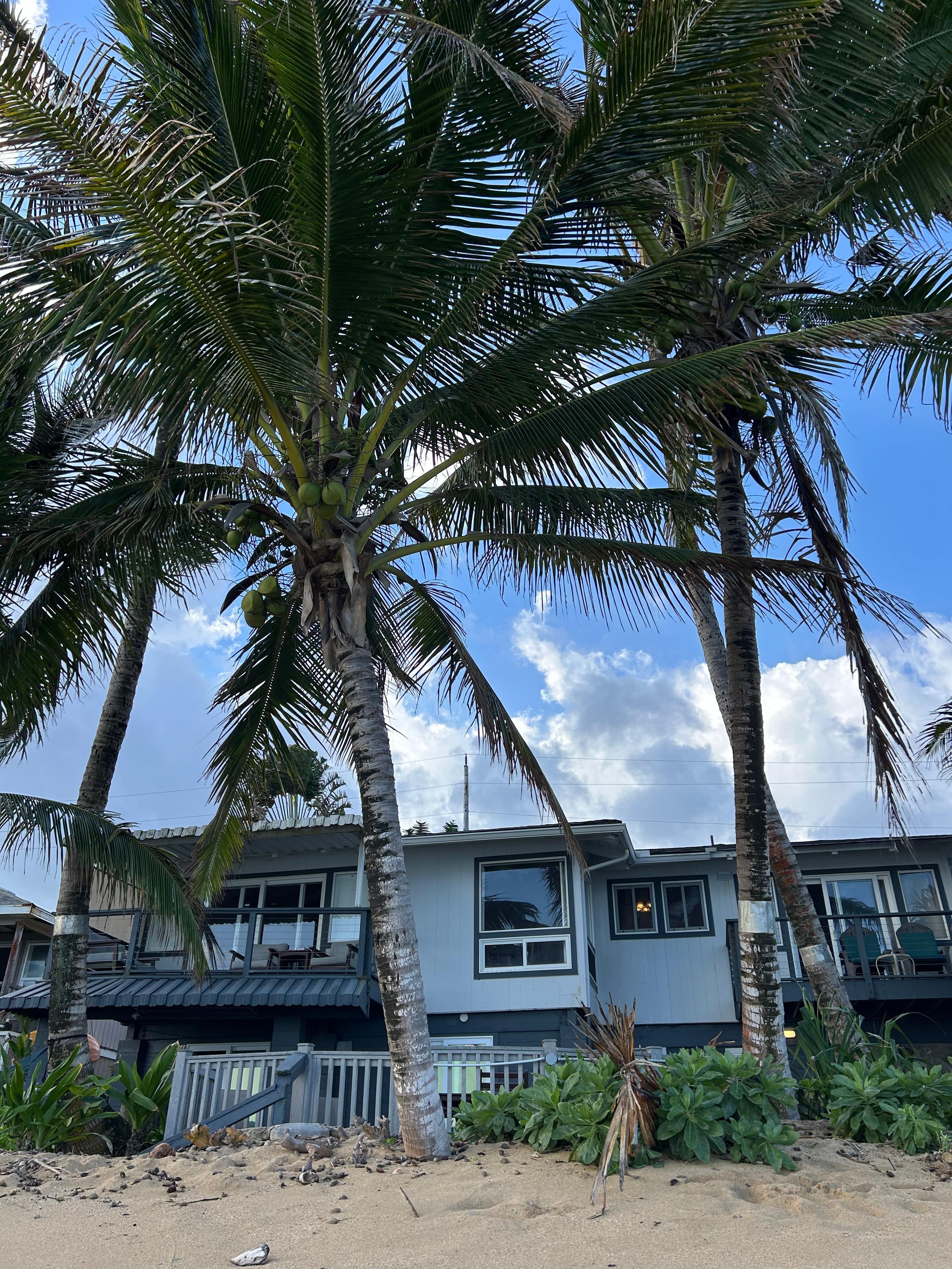 Assis directement sur une petite falaise de plage de sable, notre endroit offre une vue sur l'océan à perte de vue. Mais l'emplacement en bord de mer n'est que l'une des nombreuses caractéristiques souhaitables. L'endroit offre 2 étages et plus de 1 900 pieds carrés d'espace de vie confortable, moderne et élégant avec un décor hawaïen de bon goût.