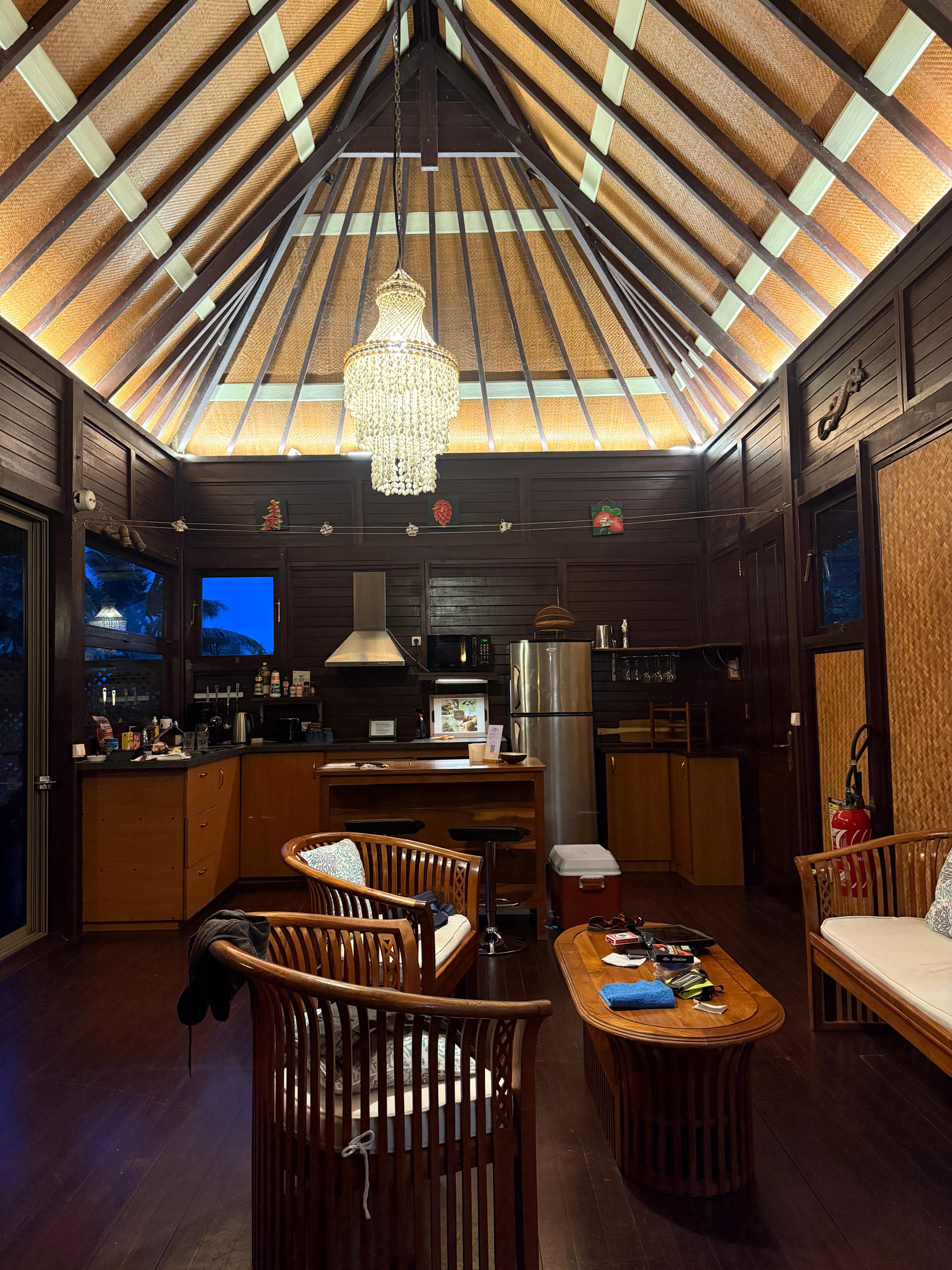 EQUIPEMENT: Il s'agit d'une Villa Deluxe avec des aménagements complets (lave-linge, sÚche-linge, etc), de larges baies vitrées en galandage sur tout le pourtour. La terrasse couverte ouvre directement sur la plage ainsi que la chambre principale. Cette Villa possÚde une cuisine avec un grand réfrigerateur/freezer, cuisiniÚre, lave-vaisselle, micro-ondes, cafetiÚre et toaster. Elle possÚde également une petite TV et un lecteur DVD. Le Wi-Fi et l'eau chaude sont inclus, ainsi que les kayaks et l'équipement de snorkeling.