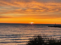 Lake-level, sunset-view cottage in walkable Bayfield, perfect for families and friend groups. Sleeps up to 10 across 4 bedrooms + loft, with a private hot tub, gym, theatre room, and indoor games for rainy or winter days. Lake Huron at your doorstep (no steep stairs) plus a fully equipped kitchen and dining for 10.
