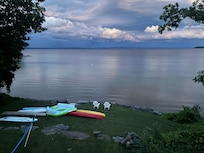 There is enough yard space for kids to run around. During the late summer months, there is a large sandy beach where you can wade out quite a distance. *Please note that the water is higher (sometimes to the stairs) during the early summer months and during wet summers.