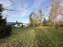 Le beau jardin clĂŽturĂ© autour (2500 mÂČ) avec des arbres matures, et la terrasse avec auvent et salon de jardin vous invite Ă la dĂ©tente.