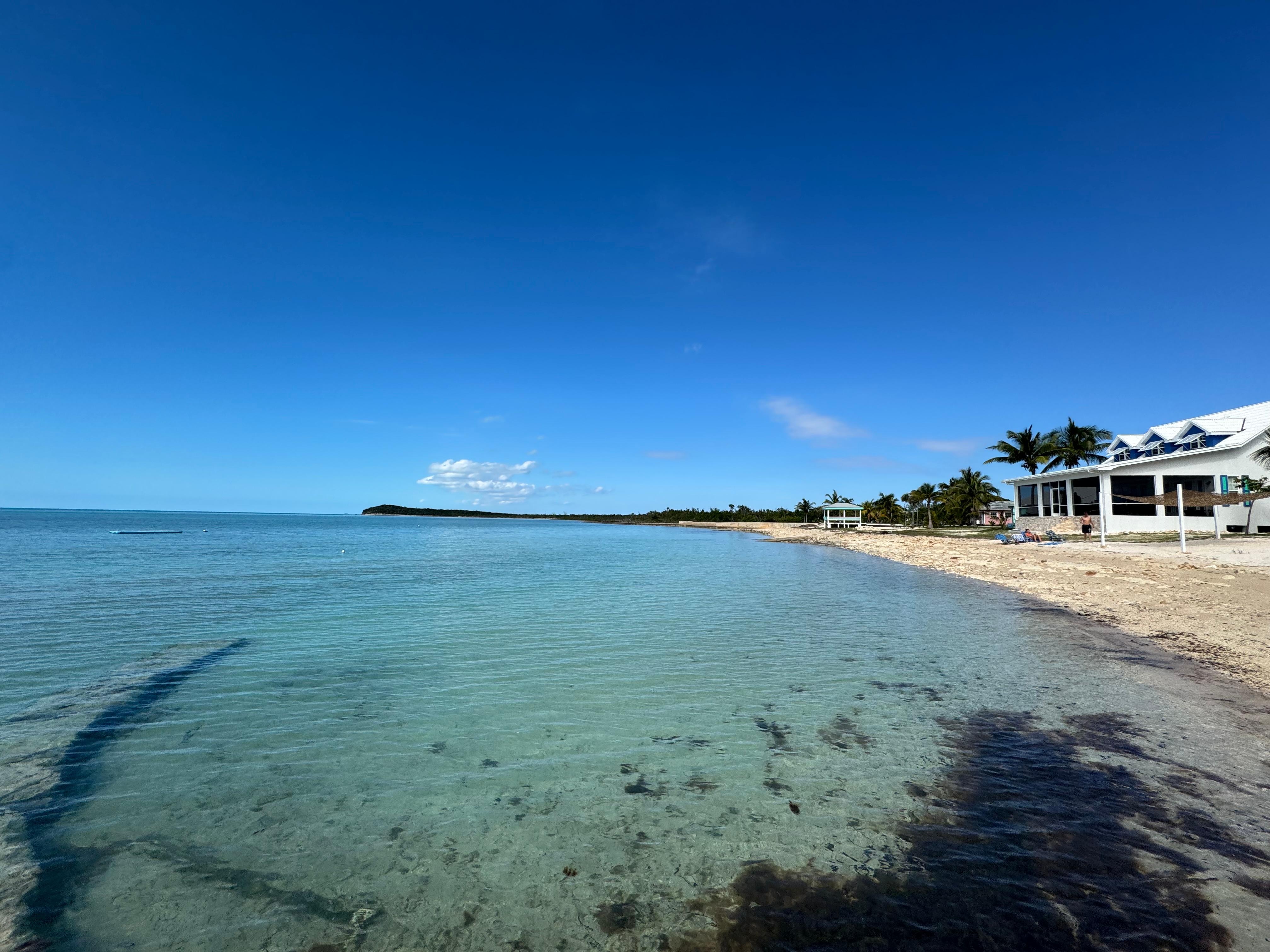 The main house is sited directly on the beach in a calm, shallow, bay perfect for swimming year round. Because of its proximity to the water, when inside the house it feels like you are on a boat. Since the house faces East/West, the front porch is the perfect spot to catch the prevailing SE breeze throughout the day. The back porch is the place to watch the ever-changing hues of the sea and, of course, the amazing sunsets. At night, stargazing is surreal due to the absence of light pollution in this part of the Bahamian archipelago.